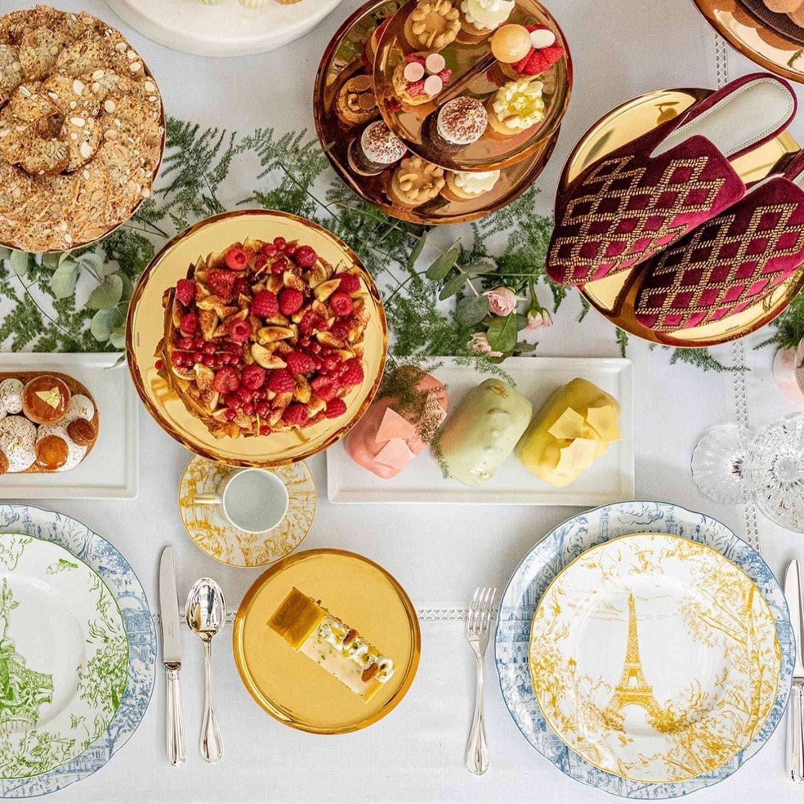 The colors of Tout Paris are those traditionally used in the toile de Jouy, a famous canvas created in the 18th century in Jouy en Josas near Paris hence its name, to which this decoration also refers.