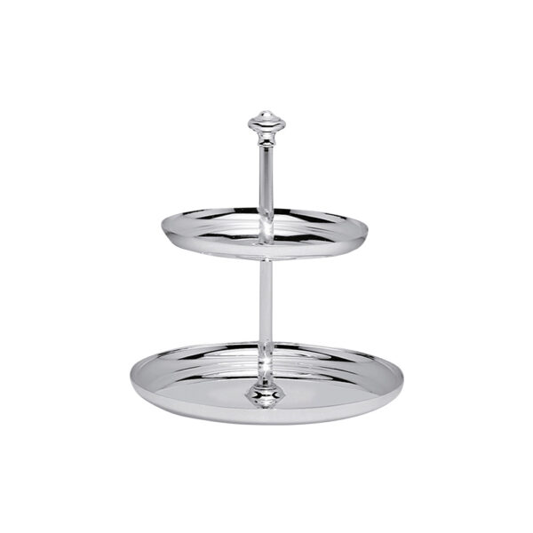 Set an elegant table with the silver-plated 2-tier dessert stand in the Albi design. Perfect for serving cupcakes, breakfast pastries, mini desserts or small sandwiches at tea time. The Albi line, created in 1968, takes its inspiration from a French town located between Toulouse and Bordeaux and its famous cathedral known for its remarkable architecture, clean straight lines and single nave.
