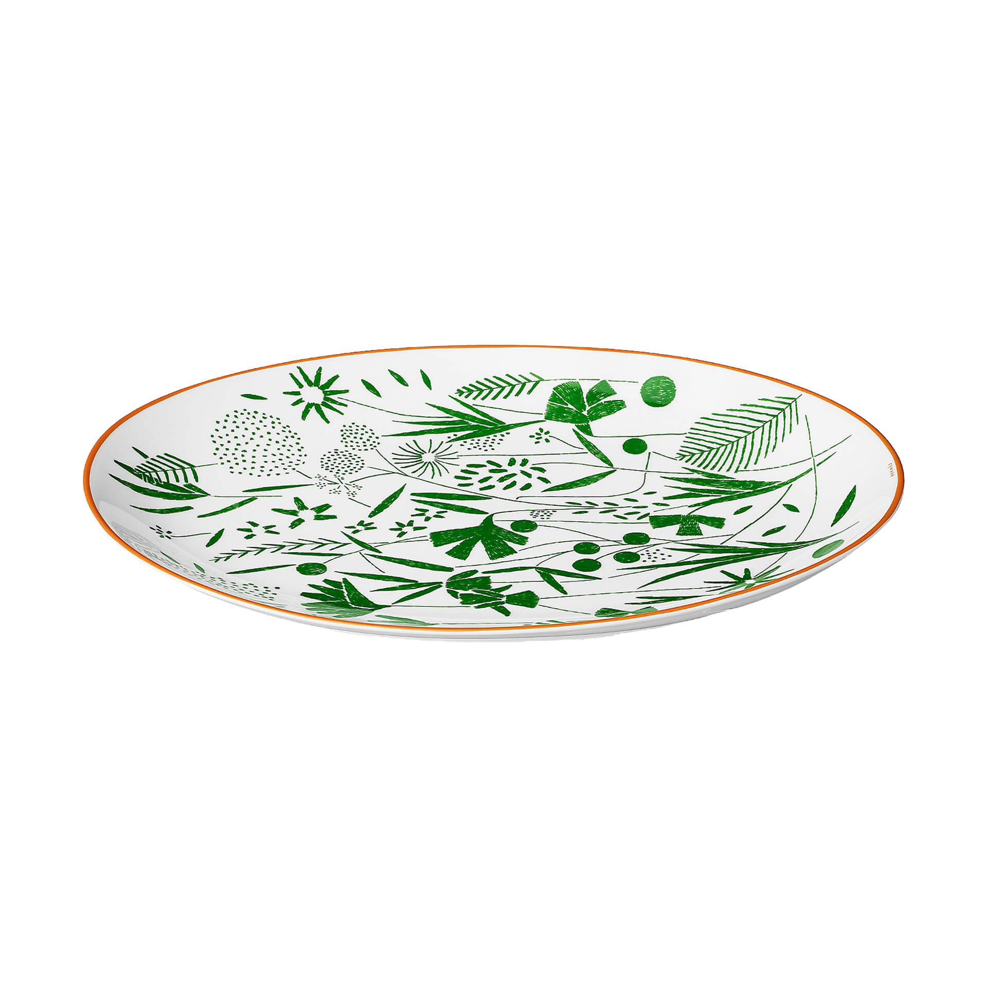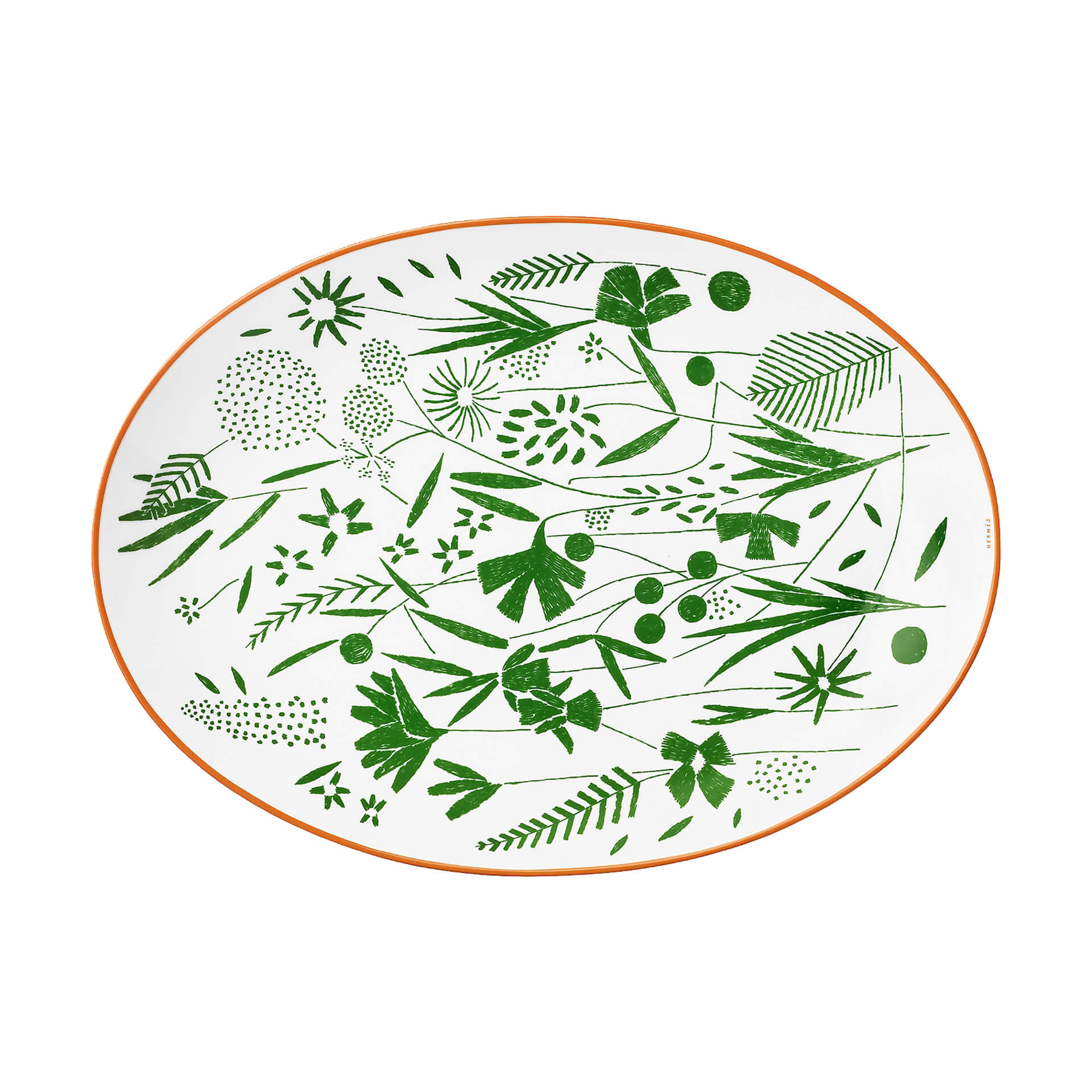 Оval platter A Walk in the Garden collection. In this collection of porcelain pieces, ranging from plates to bowls to teapots, Hermès looked to the art world and teamed up with Nigel Peake, known for his geometric sketches and use of vibrant color. The collection, aptly named A Walk in the Garden celebrates the magic of springtime and all the colors that come with it. Nigel Peake’s freehand designs, with his use of repeating floral motifs, are equal parts quaint and modern.