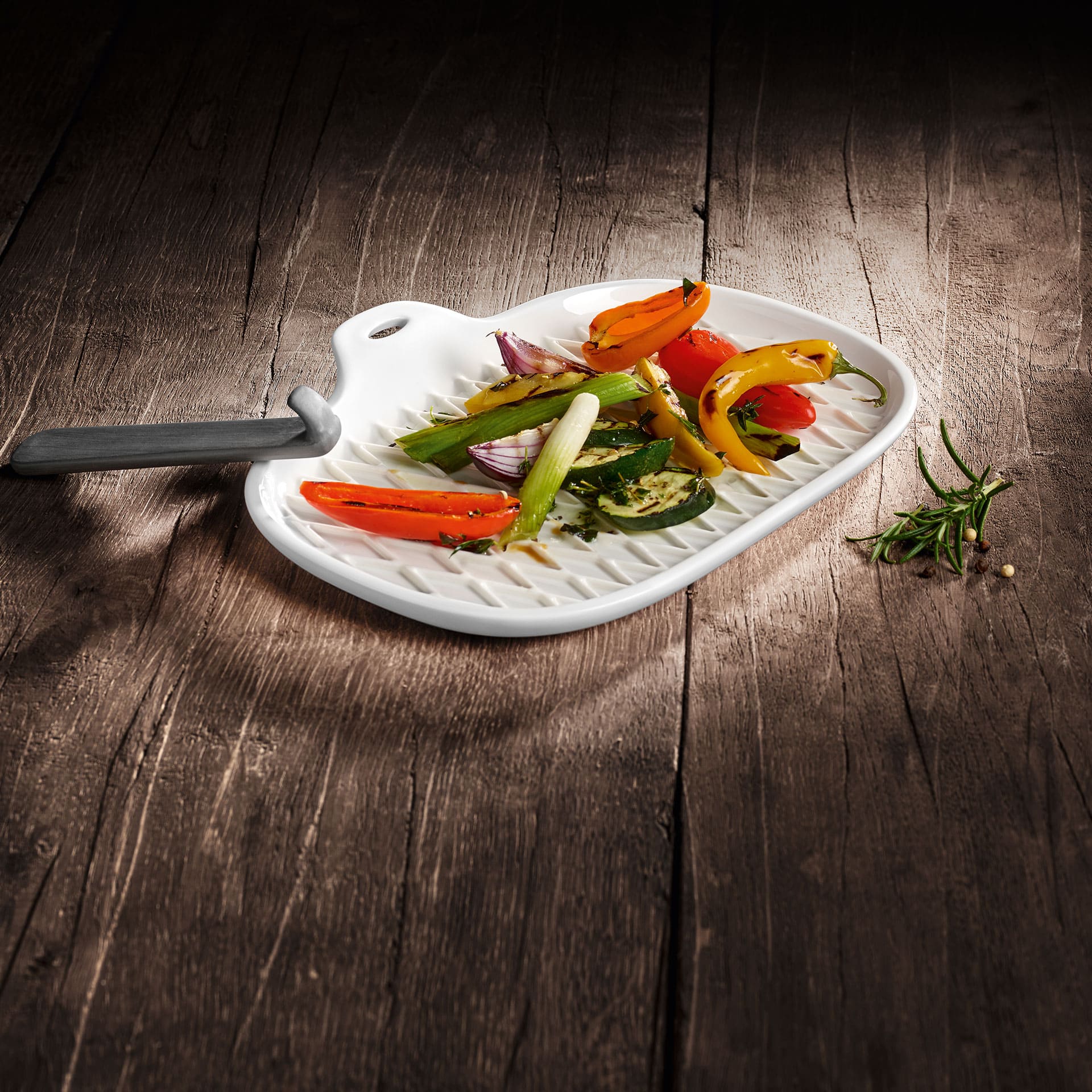 The BBQ Passion collection is perfect for grill masters. Boasting a timeless design, versatility and functionality, the crockery and accessories are ideal for a great BBQ party with family and friends. The grill pan is perfect for marinated food and grilled vegetables. Thanks to the special structure, the barbecued food wont be swimming in fat and will stay nice and crisp. The practical handle allows the pan to be served straight from the barbecue to the table. Start the next barbecue party with Villeroy Boch.
