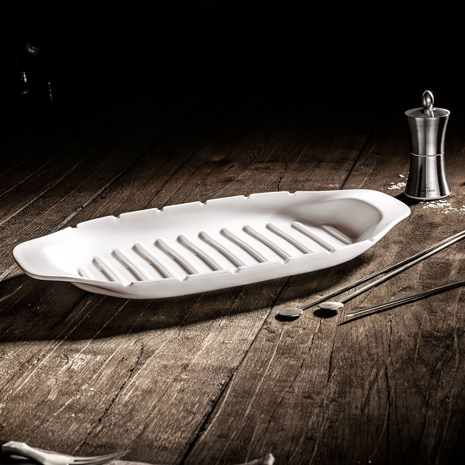 The BBQ Passion collection is perfect for grill masters. Boasting a timeless design, versatility and functionality, the crockery and accessories are ideal for a great BBQ party with family and friends. The large serving plate is perfect for meat or shish kebab straight from the grill. The grooves on the rim hold the kebab skewers. No slipping, the fat can drain away and the barbecued food stays succulent. Be inspired by BBQ Passion for real barbecue fans.