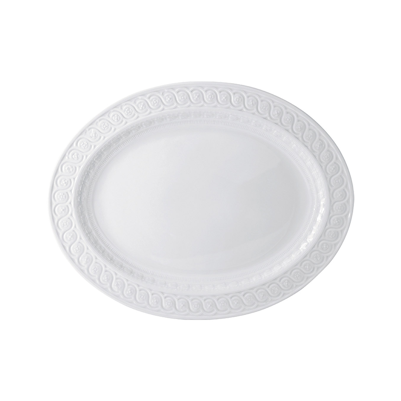 Large oval platter from Louvre collection. The motifs engraved on the pieces that make up this white service create a stylish catalogue detailing the various periods of French architecture from the Renaissance through to the Second Empire which characterize this palace.