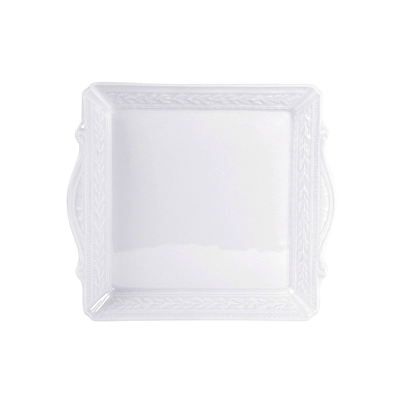 Square handled tray from Louvre collection. The motifs engraved on the pieces that make up this white service create a stylish catalogue detailing the various periods of French architecture from the Renaissance through to the Second Empire which characterize this palace.