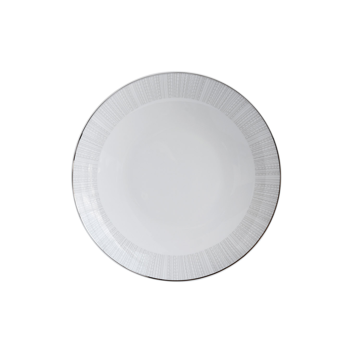 Deep round dish from Silva collection. The name of this new pattern comes from the Latinum “silva”, a poetical evocation of trees, masters of the forest. It also invites us to look closer and admire the beauty of Nature: delicate leaf veins and lace-like plant fibers ornate the rim of plates, alternatively in white on white or platinum relief.