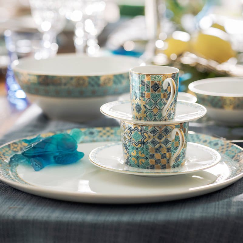 Portofino Creamer. Haviland presents Portofino, a dinner set that masterfully combines Italian taste and French know-how. For this edition, the porcelain manufacturer offers a new take on mosaic, drawing inspiration from the colours of Portofino, a stunning village known for its golden reflections and shades of blue.