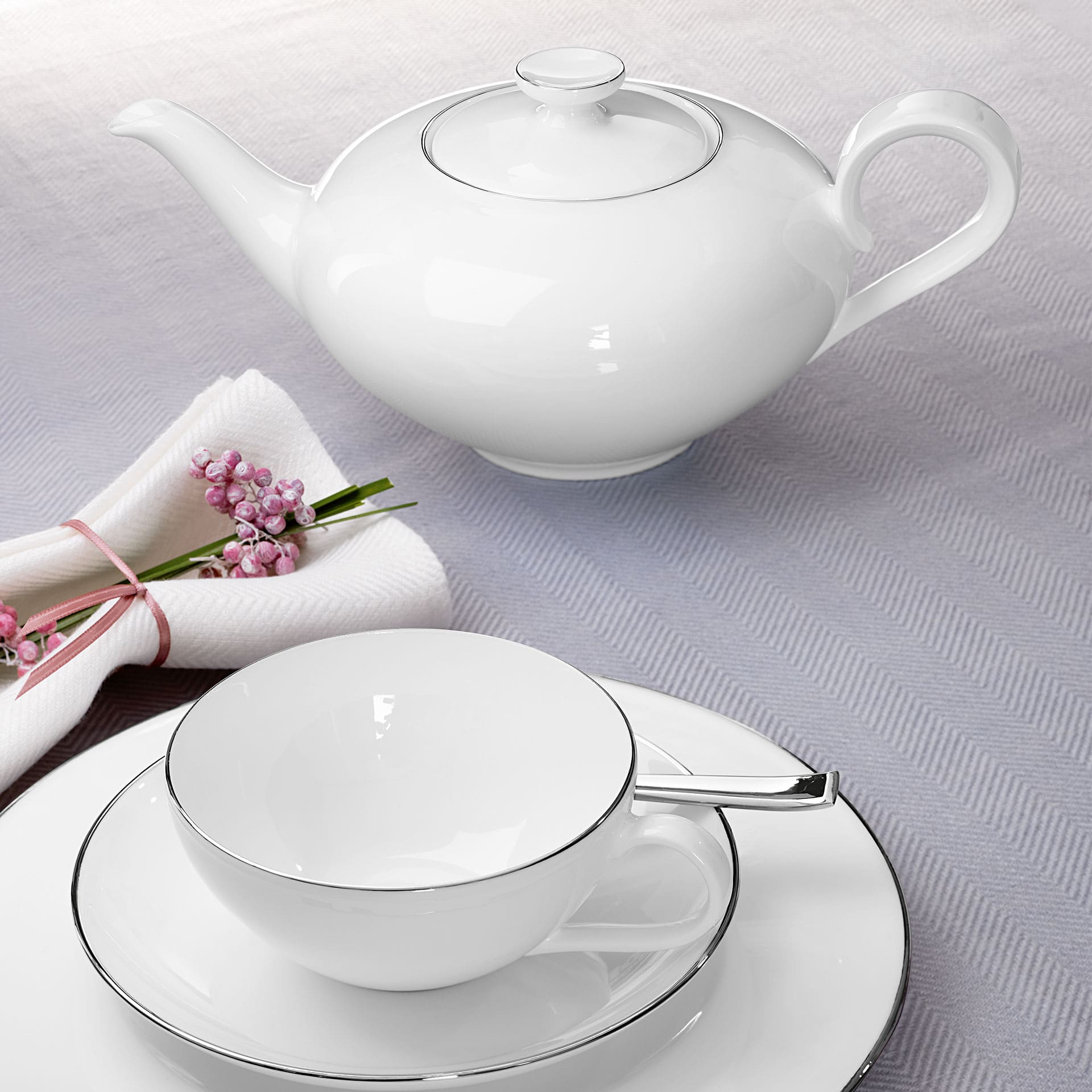 Villeroy Boch offers the ultimate in elegance for every dining table. The timeless Anmut Platinum No.1 and No.2 collections are characterised by a brilliant white and an elegant platinum decor. these elegant coffee cups from the Anmut Platinum No.1 collection turn even a short coffee break at work into a feast for all the senses. Enjoy your coffee with a hint of