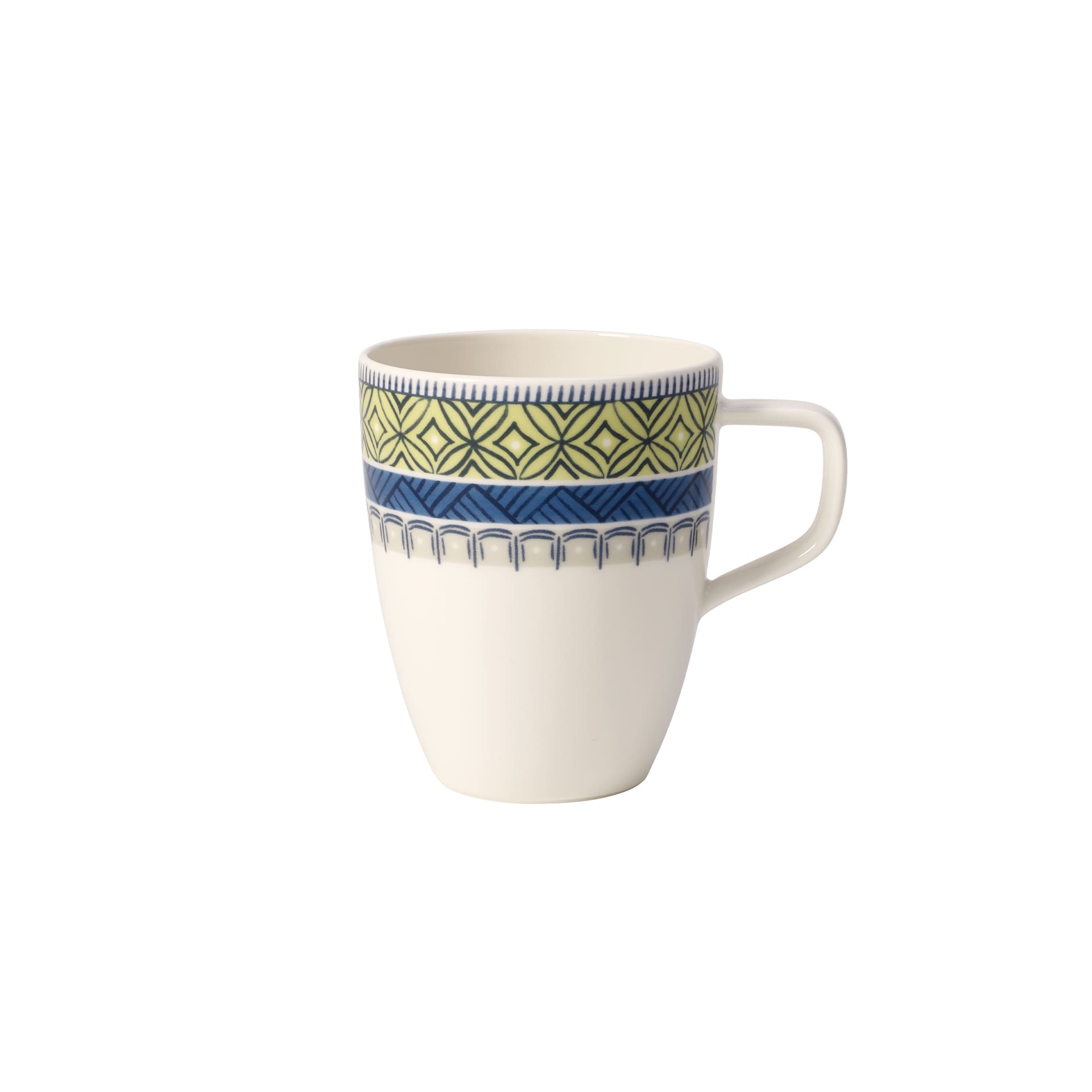 Casale Blu Alda mug. Unforgettably beautiful Italian style Casale Blu. From Perugia to Assisi and Lake Trasimene: Italys central Umbria region is steeped in history. The Casale Blu pattern was inspired by the ancient ceramic-making tradition around the Tiber and Chiascio rivers. Subtle Blu and green Mediterranean patterns give the popular Artesano collection a whole new look. Add an Italian twist to your afternoon coffee or a dash of Mediterranean chic to a light brunch in the garden or a special feast with this extensive tableware series.