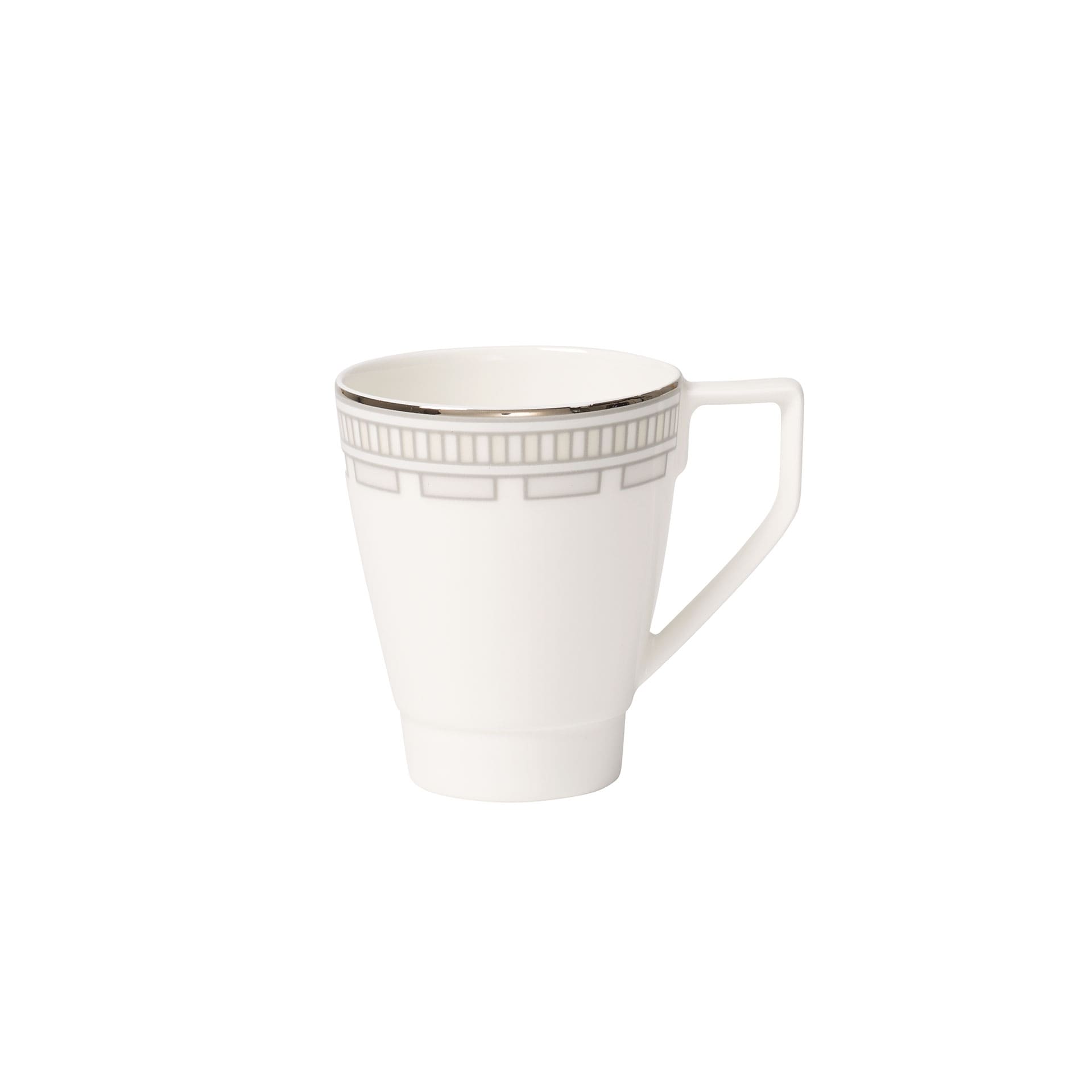 This espresso cup forms part of la Classica Contura, the decorated option of the pure white collection la Classica Nuova. Inspired by domes and rotundas the Home decor underlines the clear design language of the tableware with fine lines and graphic patterns. It can be used alone but can also be wonderfully combined with the white version. To complete the table-settings a selection of matching accessories has been developed: glass candle stands in two different sizes with matching candles, and coordinating knife rests and napkin rings, also of glass.