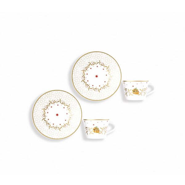 The shape of the cup emphasizes the taste and aroma of coffee thanks to its thin edges while keeping it hot. Perfect for a Christmas or Thanksgiving table setting. Eyes full of stars and champagne bubbles delicately placed on the surface of the plates to highlight the most beautiful meal of the year, that of Christmas Eve, when the whole family is gathered around the table for a dinner prepared with all the attention that this long-awaited moment requires. Set your table with the Noel tableware collection to create a magical atmosphere that will remain a joyful, refined and memorable moment. Children will remember the sleighs, gifts, Christmas tree, fireplace arranged in the center of the dessert plates, while the adults will kiss under the mistletoe.