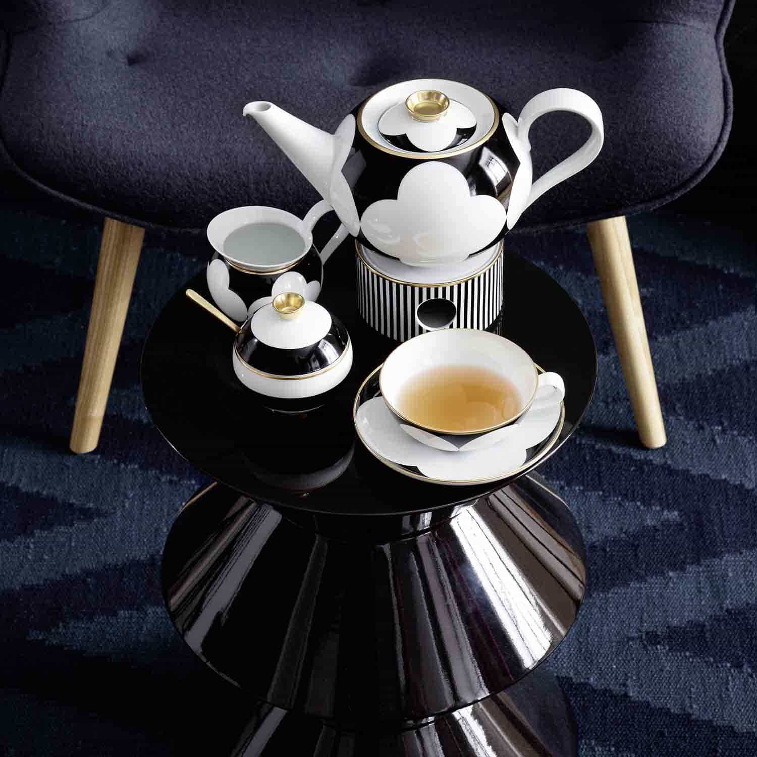 With CA’ D’ORO, the finest burnished gold refines pure black and white contrasts. The geometric interplay gives rise to classic stripes, squares, circles and other architectonic patterns.