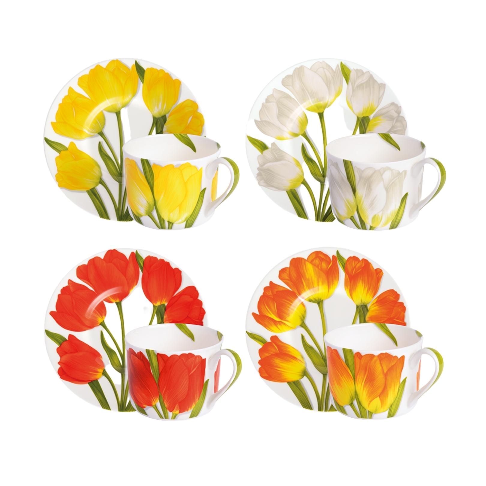 Set of 4 assorted Tea / espresso cups and saucers Freedom Taitù 1-82.