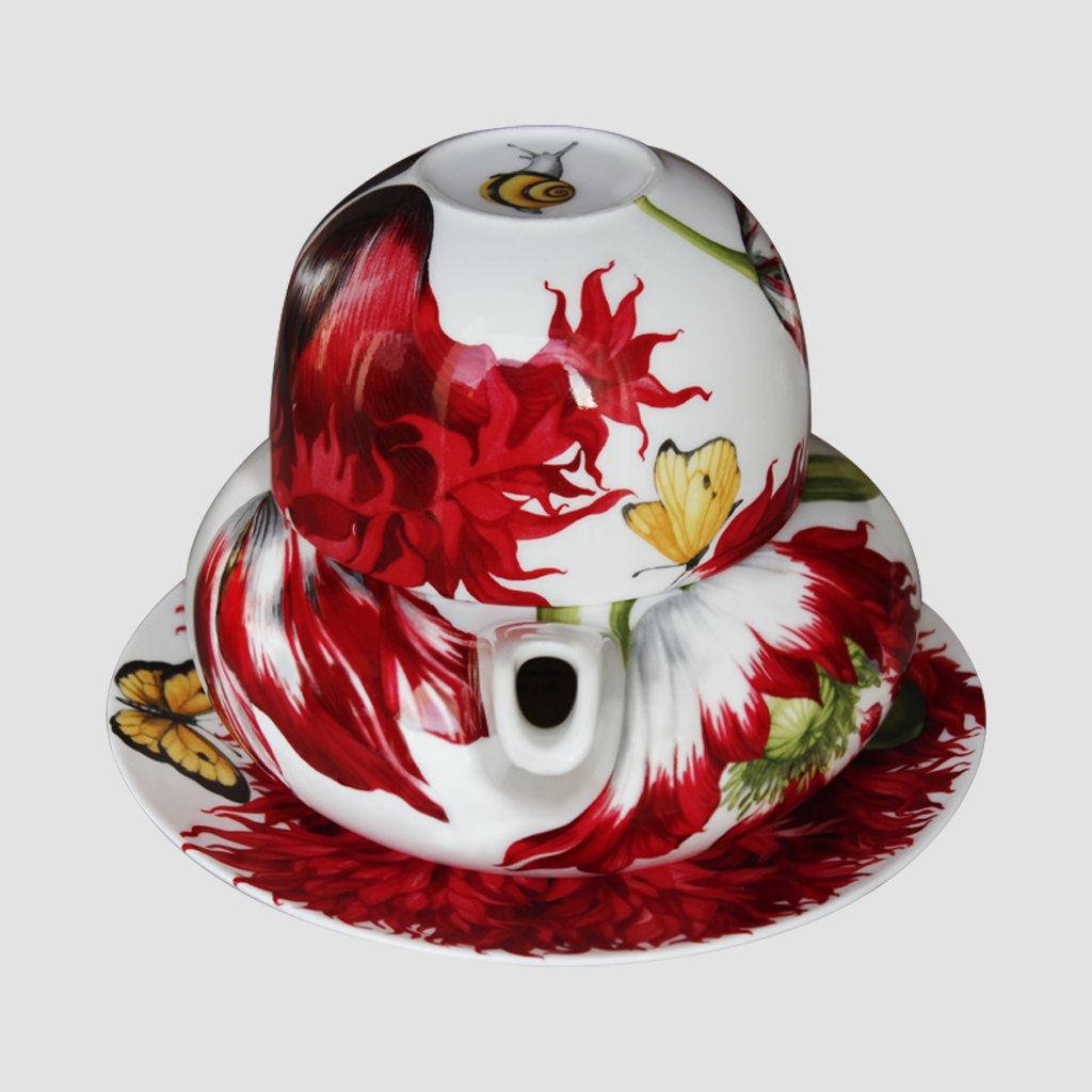 With Emotion, TAITÙ introduces new, sinuous shapes. The Flemish decor wraps every detail of the porcelain.