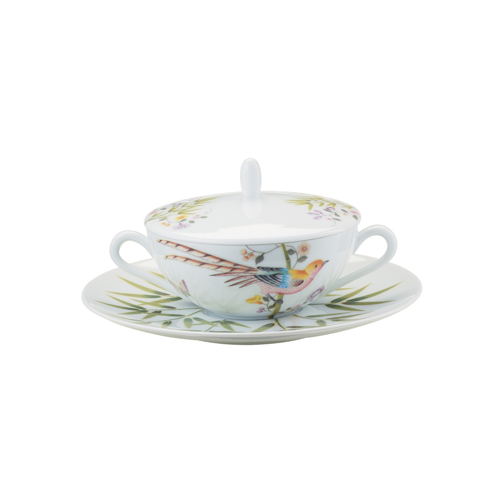 Porcelaines Raynaud has created a magical collection with an enchanting décor designed in collaboration with Fromental, a well-known name in British interior design. Inspiration for this pattern was drawn from Fromental’s Chinoiserie wallpaper collection, which represents the exoticism and luxuriance of nature overflowing with butterflies and birds of paradise. This vision of a welcoming and untouched natural world leads us on a dreamlike journey. Raynaud brings a modern twist to wallpaper patterns transferred to streamlined shapes, with the focus on patterns and the way they are centred varying according to the piece. The main pieces are available in turquoise, with a multicoloured pattern enhanced by a metallic coloured background echoing the woven effect of wallpaper. In line with Cristobal and Verdures patterns, “Paradis” is now writing a new chapter in the story which links Raynaud with decorators.