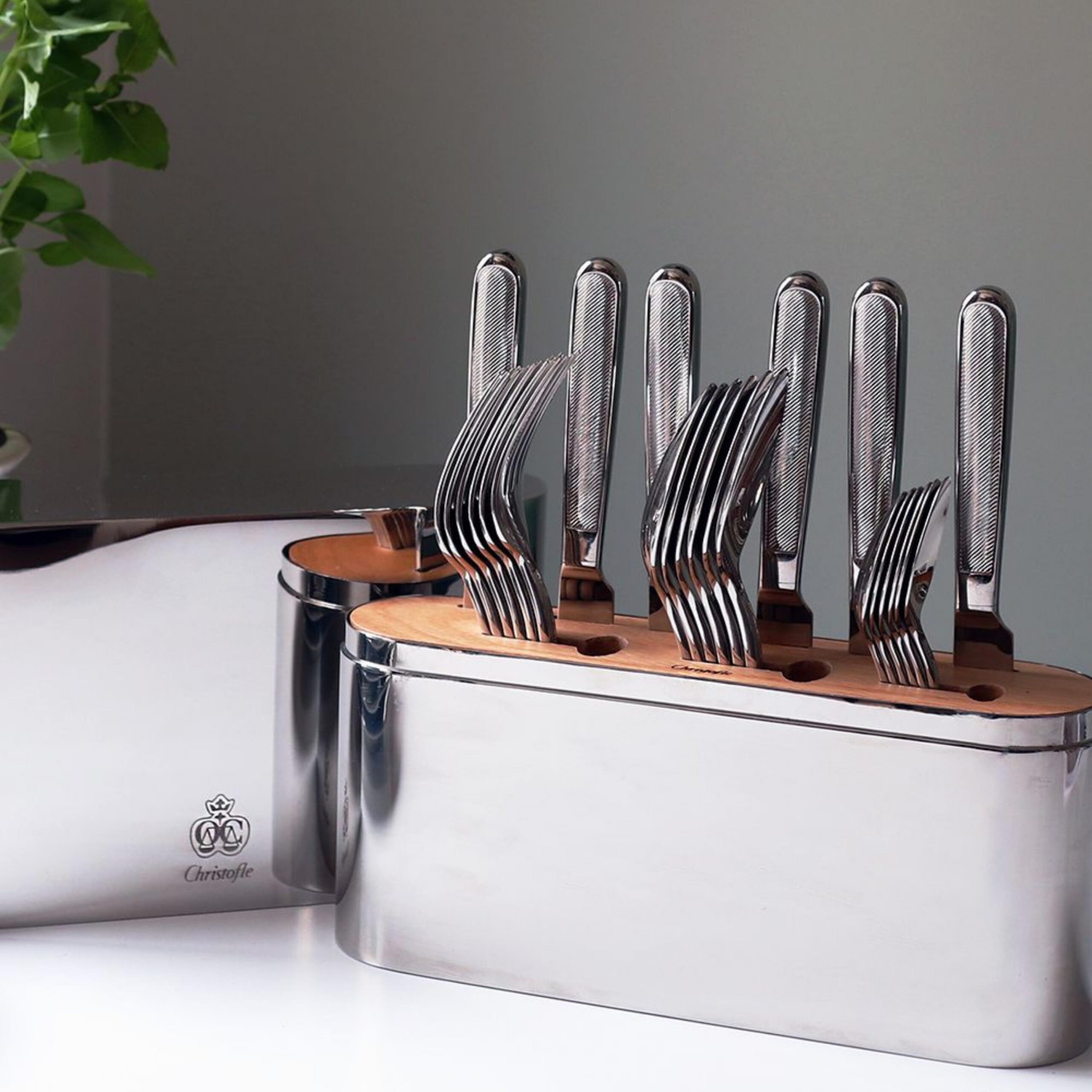 24-Piece Stainless Steel Flatware Set with Chest Christofle.