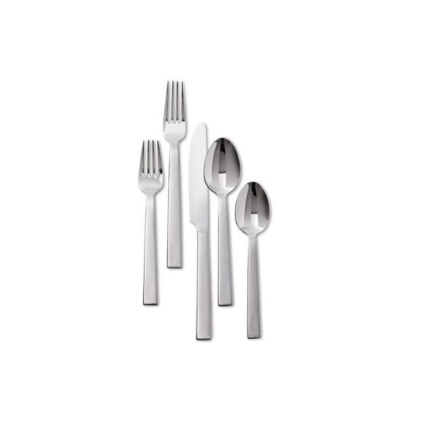 With clean lines and a golden hue this stainless steel flatware set is an elegant addition to simple everyday meals and formal entertaining.