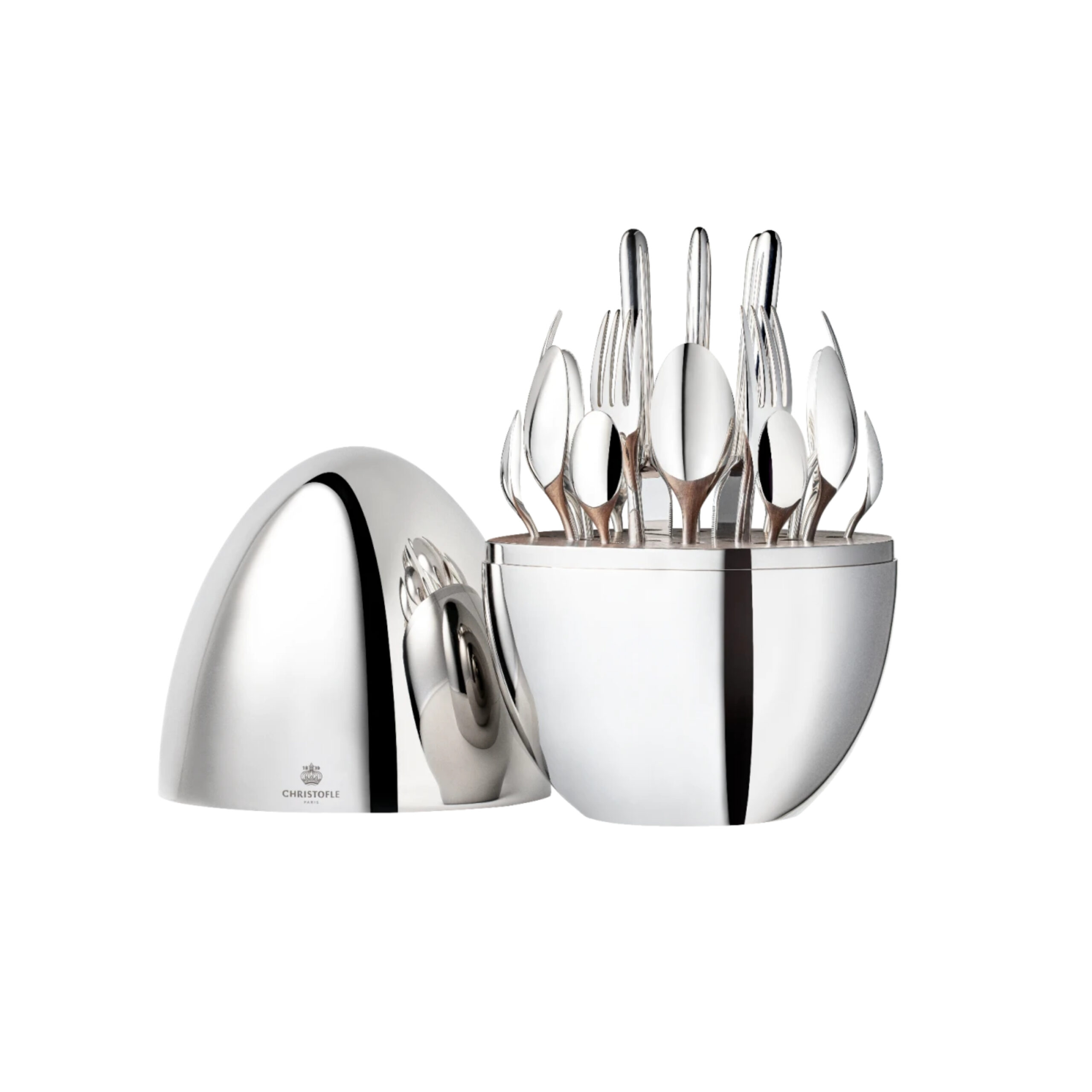 A decorative piece with a compact shape, MOOD By Christofle is a streamlined, comtemporary and universal statement, in a silver-plated service for six. MOOD By Christofle brings to the table the promise of conviviality and moments to remember.
