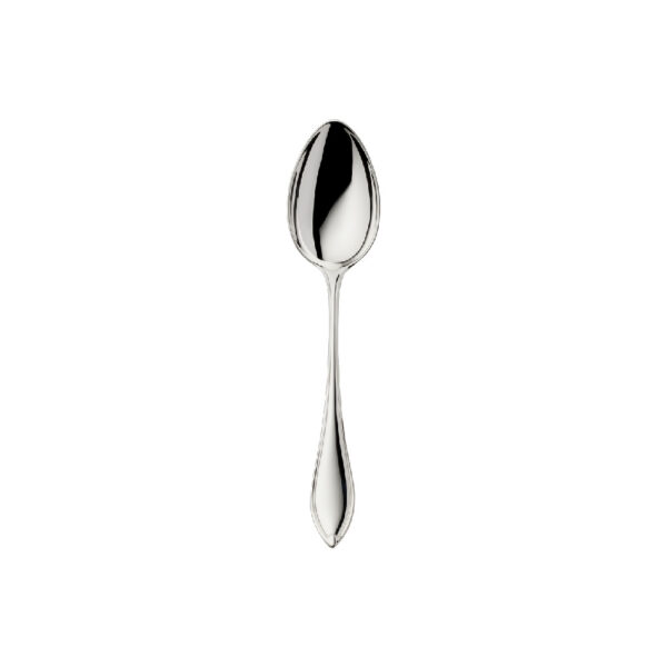The narrow, point oval Navette cut on precious stones gives this cutlery its name – and the gently-swung, lily-shaped handle with the sculptural overlap at its end truly honours this name.