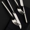 The NewWave cutlery combines a slim, pragmatic line with the characteristic wave motion of the NewWave design. This gives the pieces a young and creative touch. For anyone who enjoys experimenting and loves unusual design. The 12-piece pizza and steak cutlery consists of very sharp knives and stylish forks, ideal for crispy pizza or juicy steaks. Be inspired by the extravagant NewWave design.