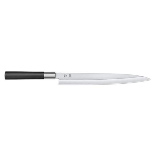 The polished blades of the Wasabi Black Series are made of newly developed corrosion-resistant 6A/1K6 steel with a hardness value of 56 ±1 HRC. The extensive range offers both double-edged blade shapes, as well as traditional Japanese single-edged blade shapes. The slightly arched back of the blade allows a secure grip during work, making it easier to make fine rocking movements, for example.