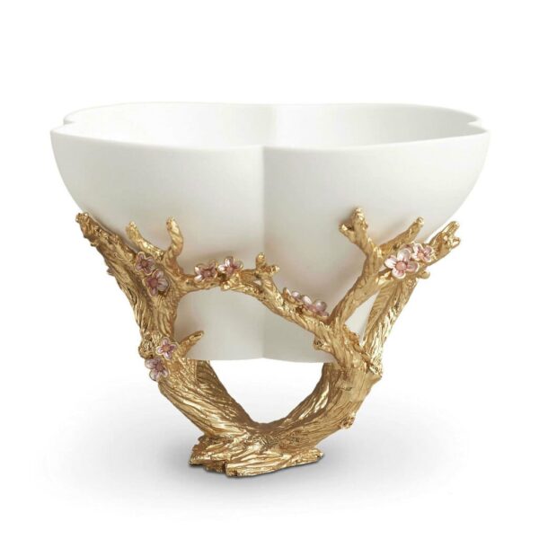 Like a Japanese cherry blossom tree plated in gold, the Blossom Bowl stuns with its realism and opulent beauty. Ornate branches, plated in 24 karat gold, bloom with enamelled blossoms, which are set with rose quartz cabochons. This spectacular display supports a Limoges porcelain bowl, and truly showcases the perfectly artistic nature of LObjet.