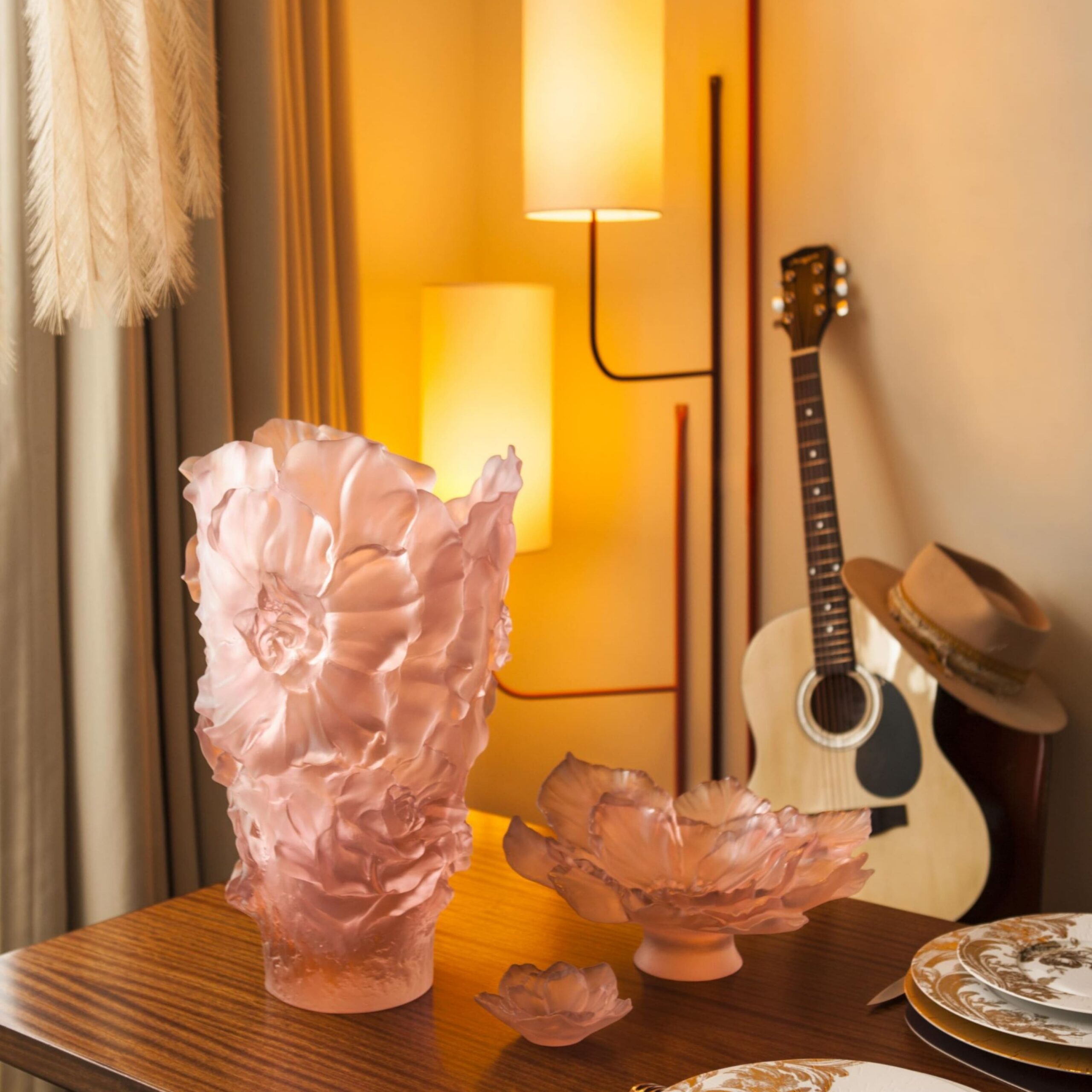 The new floral collection at Daum is in line with this ode to femininity. The Camellia collection, delicate and refined, invites you on a promenade in a magnificent winter garden. Daum draws its inspiration from several varieties of the Camellia, and specifically, the Spring Festival Camellia. The Daum atelier chose this particular species for its dense petals in movement, which capture light and give life to the material.