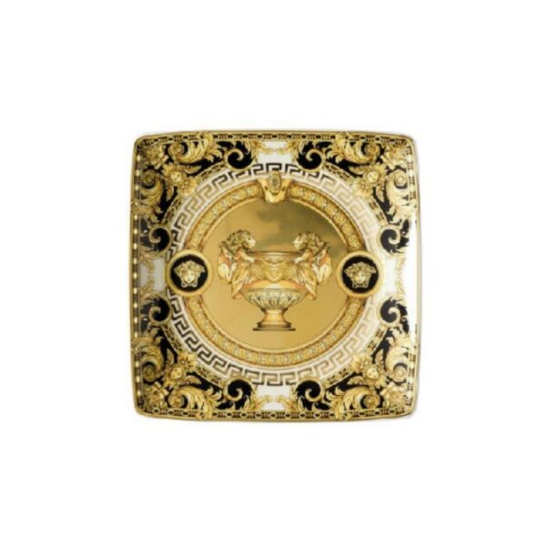Gold baroque elements and a bold silver Greek key frame a luxurious vase and two imposing lions – the eloquent details of the new Prestige Gala collection. Inspired by the iconic Versace print “Le Vase Baroque”, the new design is enriched by gold and platinum embellishments, emphasized in black and turquoise. With a second variation in bright turquoise color – the Prestige Gala Le Bleu, the new range reflects the elegance of the iconic Prestige glass collection, and is the coronation to the Medusa Gala series.