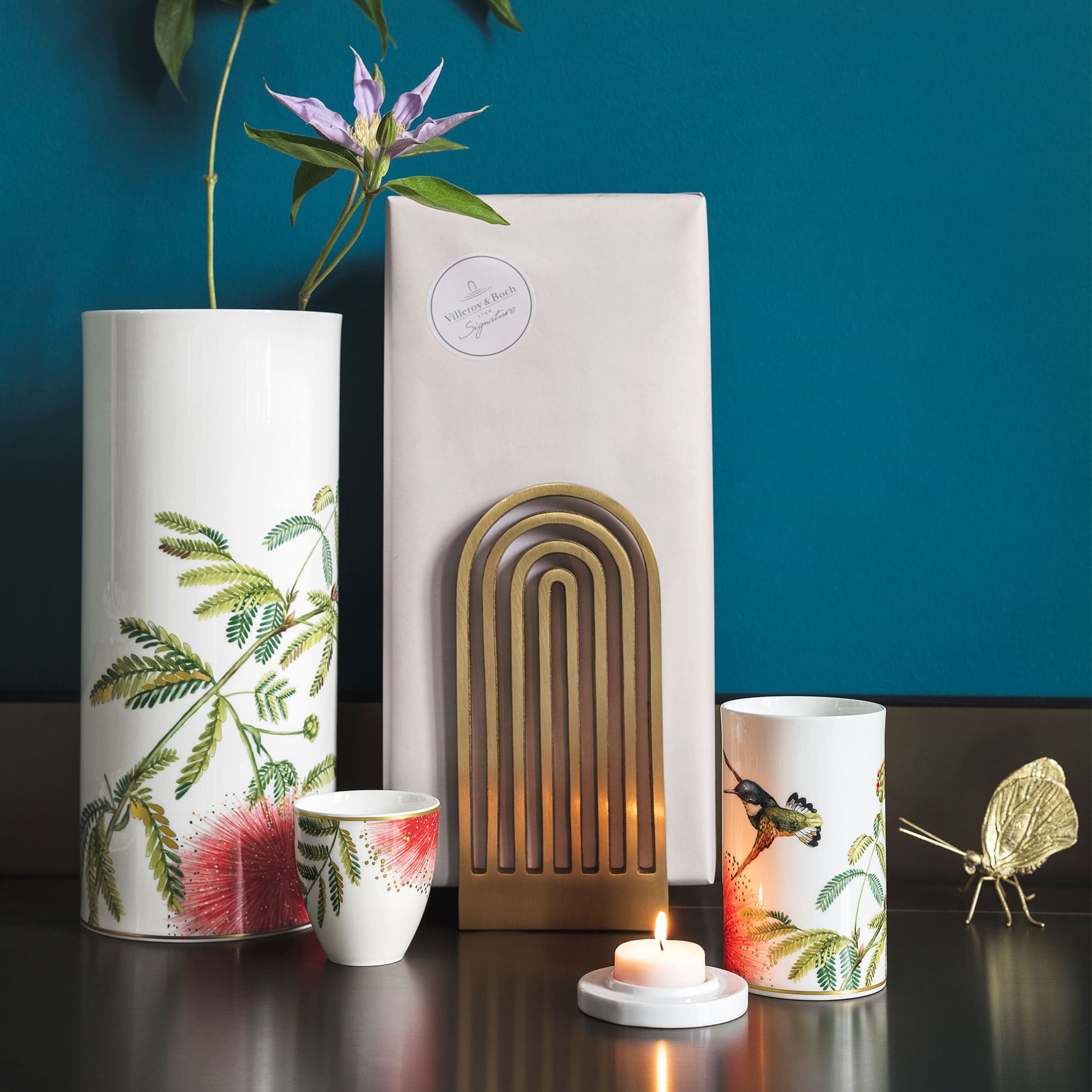 Magnificent orchids, enchanting hummingbirds and colourful butterflies straight from a tropical rainforest – the Amazonia crockery and gifts collection lets you follow in the footsteps of the naturalist Alexander von Humboldt. Each element is an exclusive eye-catcher made from fine Premium Bone Porcelain that takes you on a voyage of discovery to the true beauty of nature. Elegant napkin rings add the finishing touch to your beautifully set table while underlining your love for detail. Go on your own style expedition with a floral Home decor.