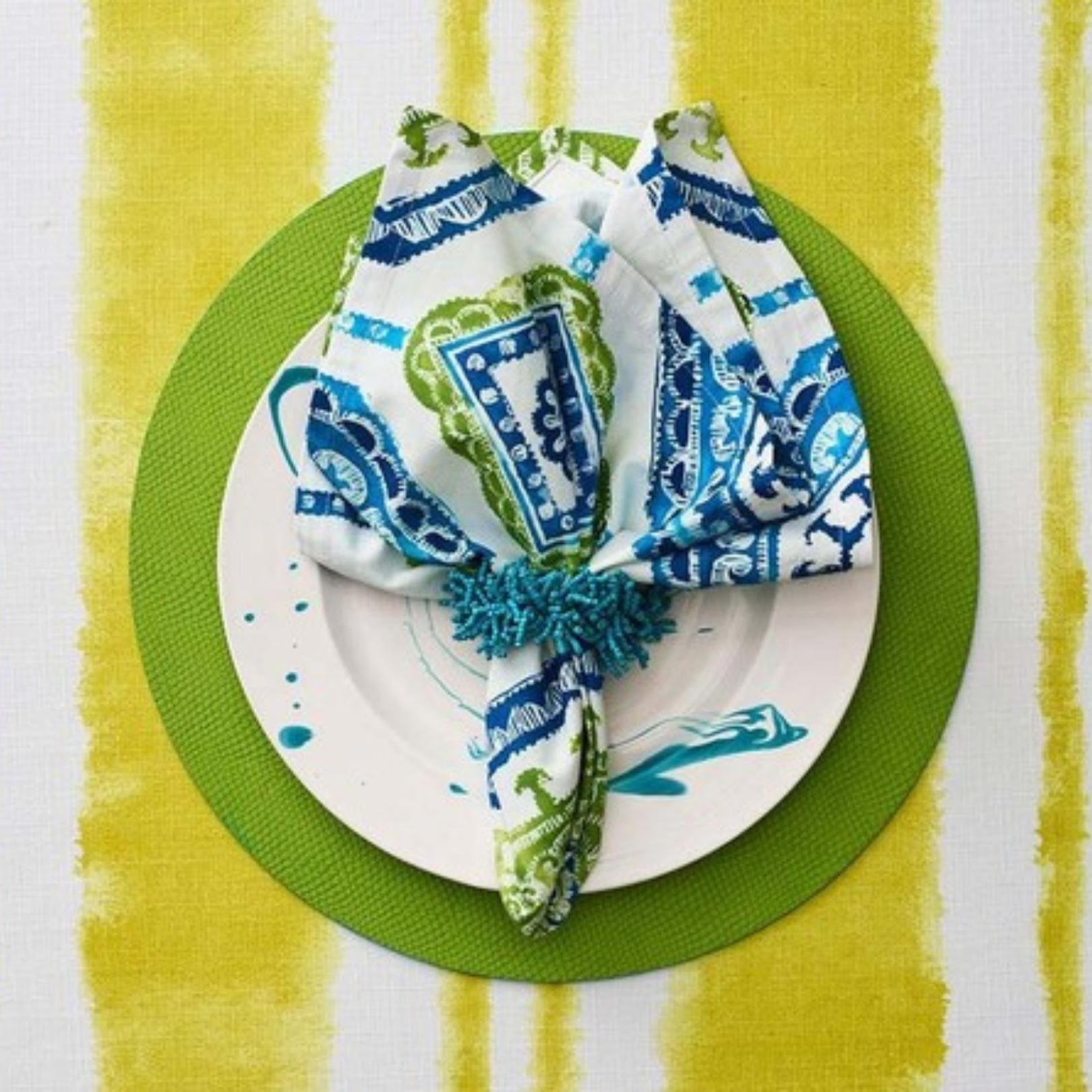 Napkin 53×53 cm white/turquoise/green Kim Seybert NA1180855WTQGR.