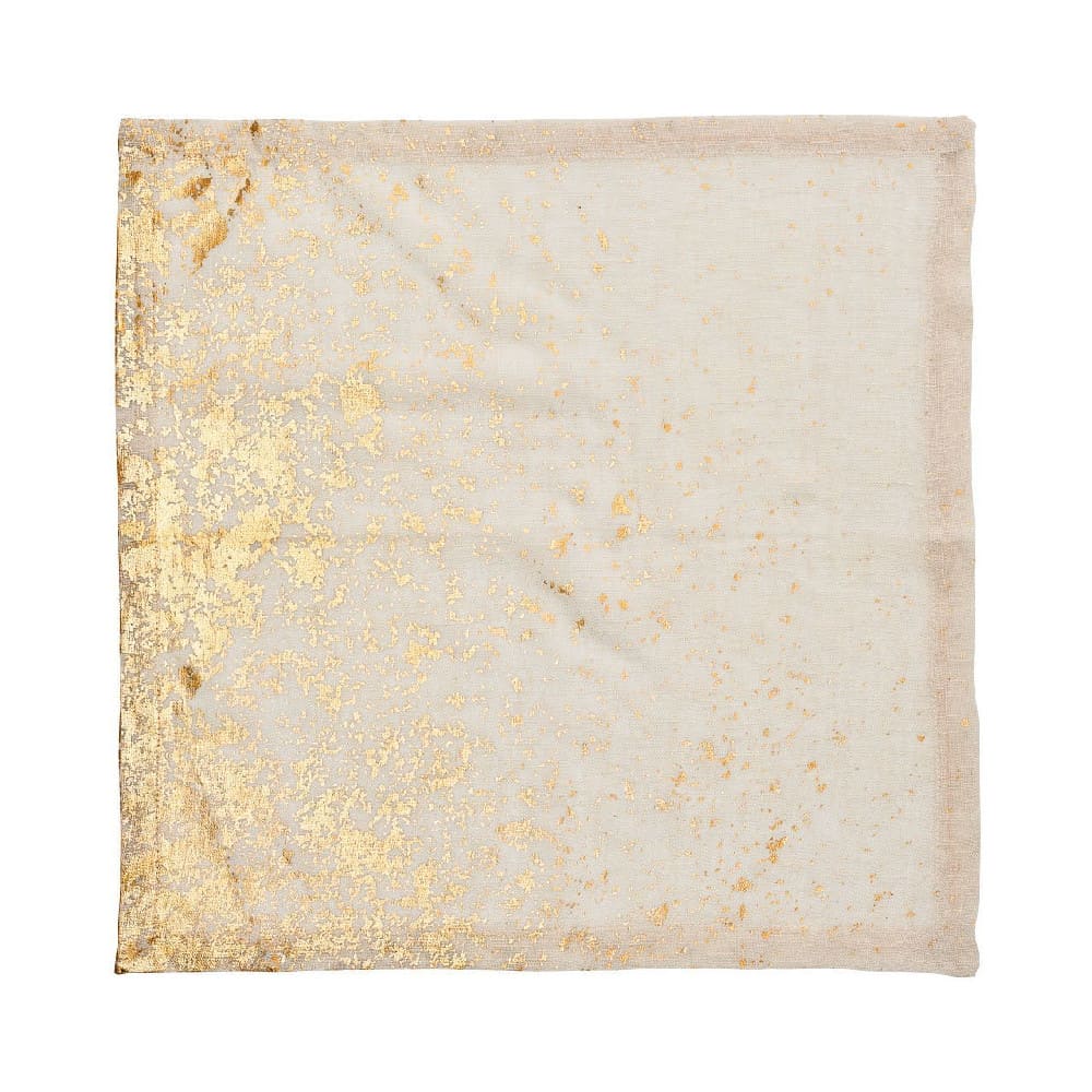 The linen Metafoil Napkin in gold is evocative of sunlight striking glass. Using an innovative, hand-done technique, the metallic gold foil is printed on a linen napkin creating an organic, splatter effect. Offered in silver and gold colorways, the glistening foil on the linen napkin is reminiscent of the refraction of light on glass skyscrapers.