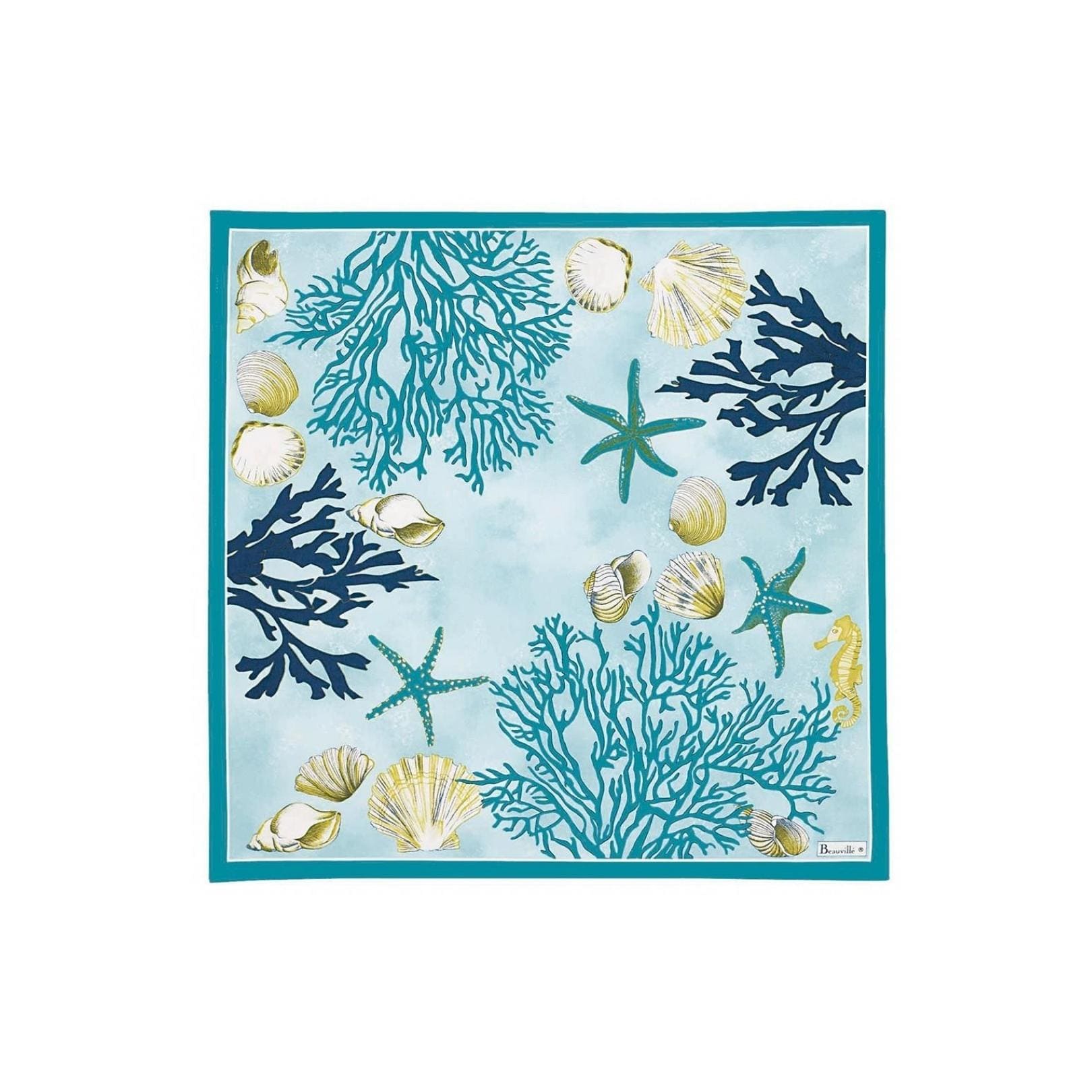 Discover the seaside with the Corail napkin. Between corals and shells, this pretty anti-stain napkin reveals with subtlety the richness of the depths in shades of blue and coral.