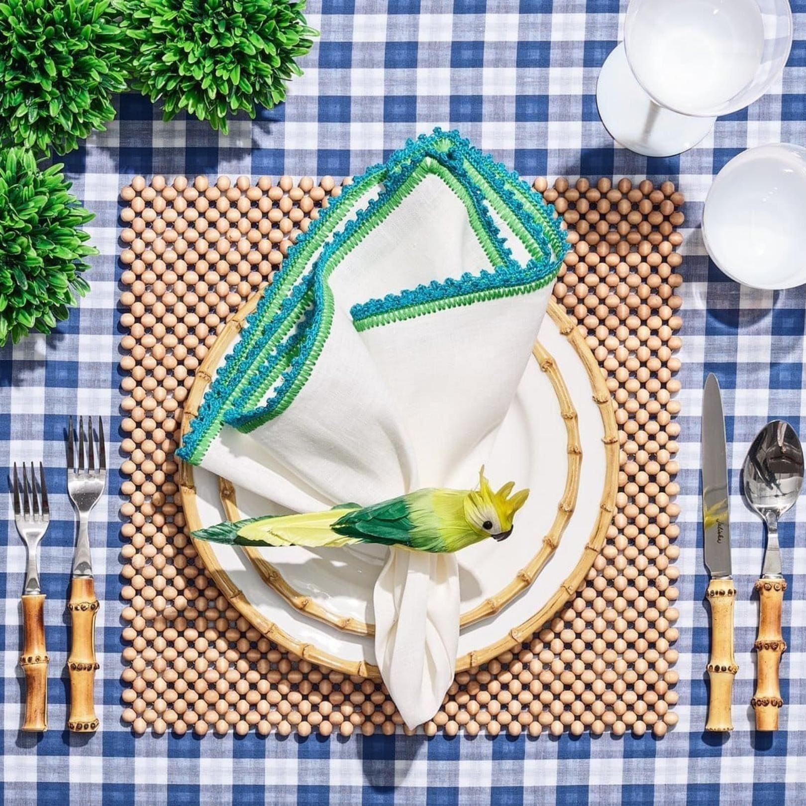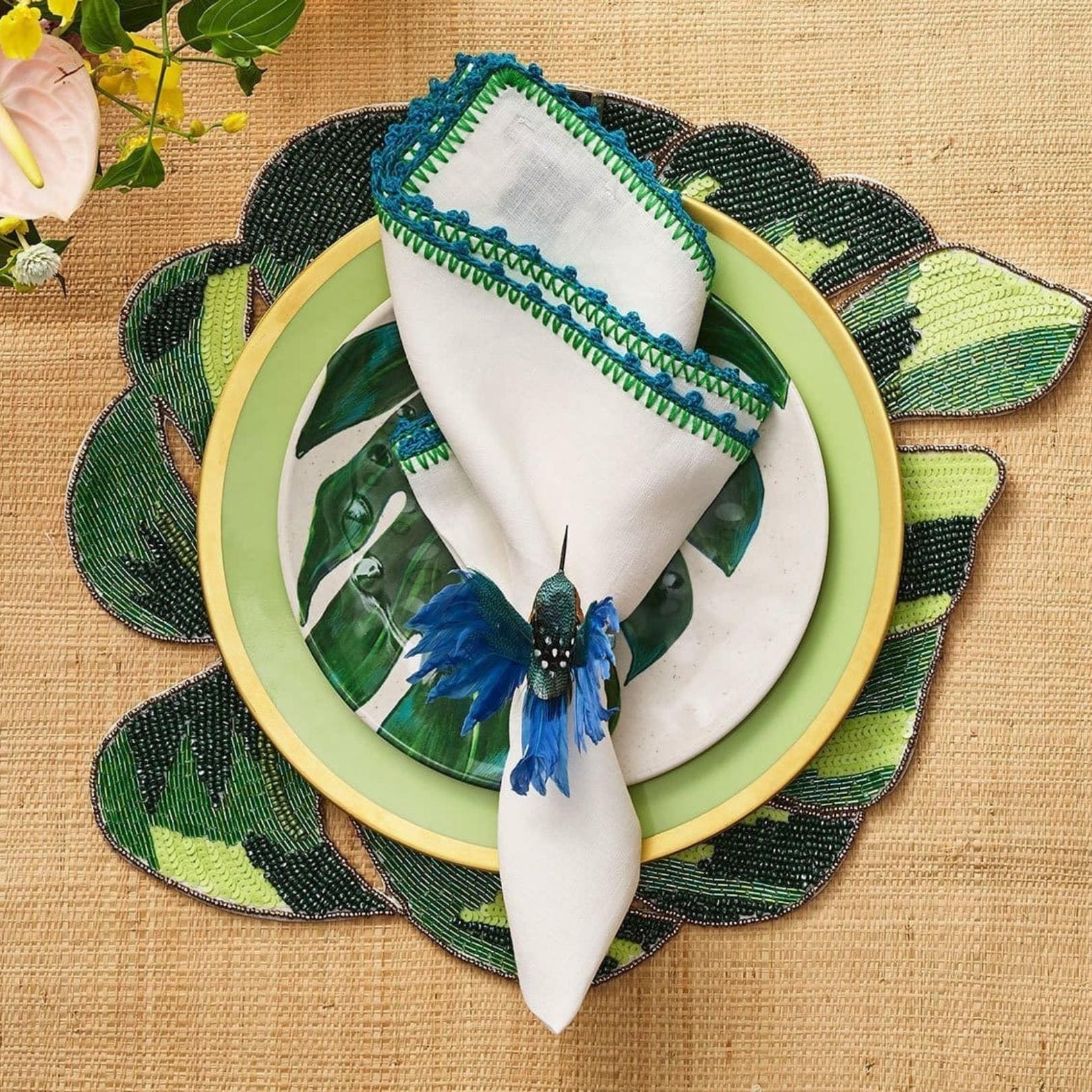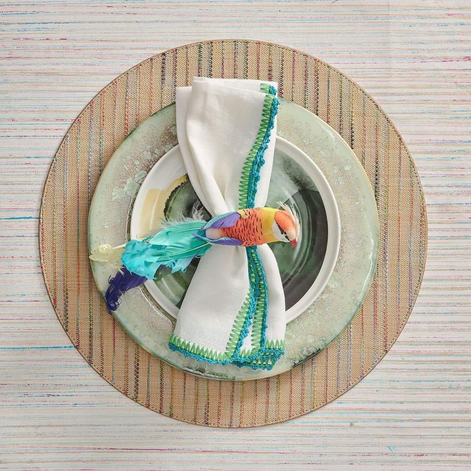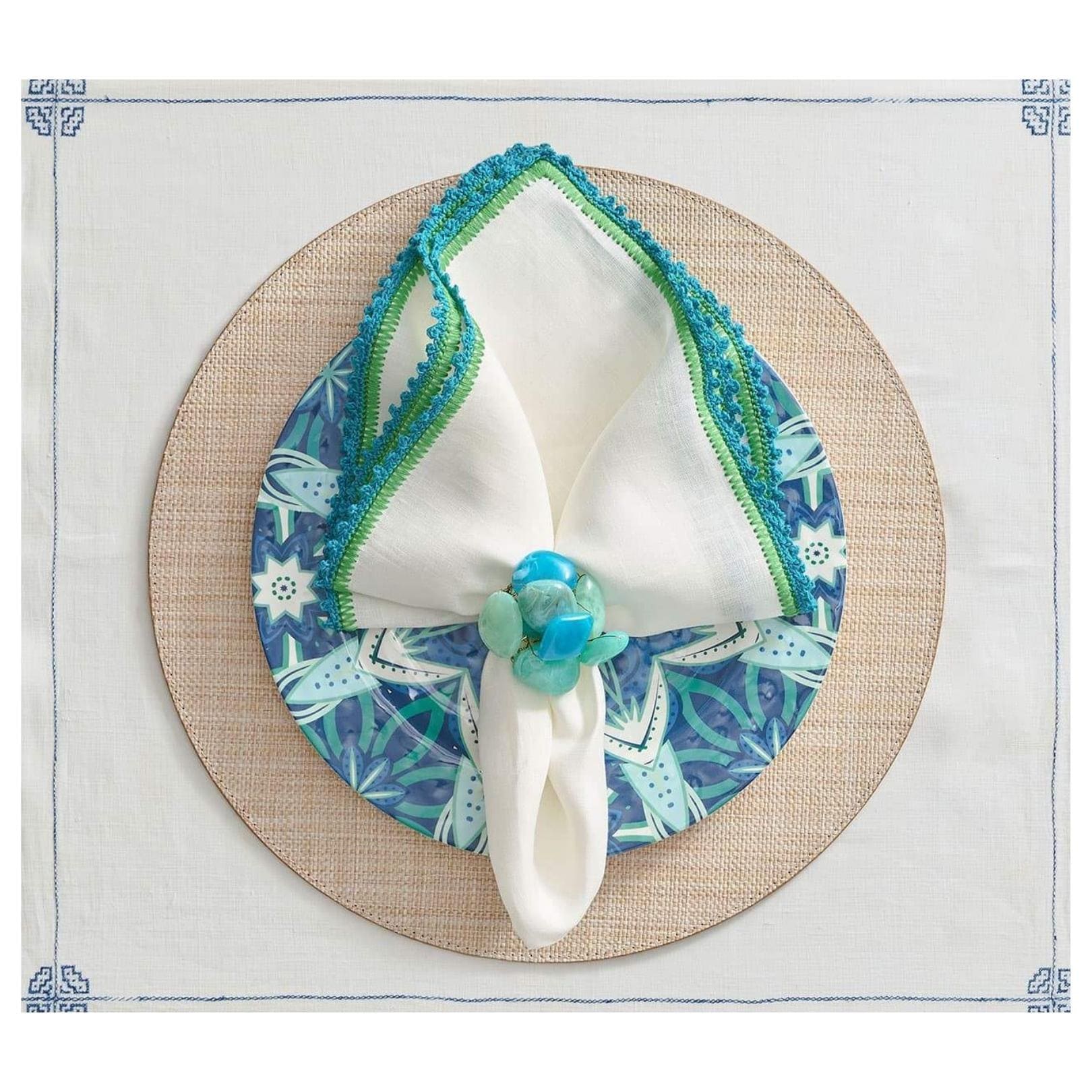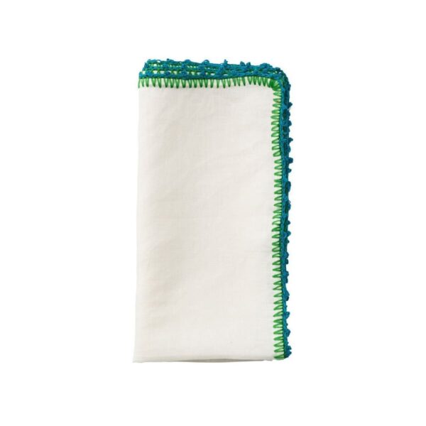 The Knotted Napkin will sure make for a lively addition to your table, what with its two-tone hand crocheted edging in vibrant combinations. Its white linen body all the more brings the eye to the colorful trim. Choose from Turquoise/Green, Pink/Orange or Natural/Brown.
