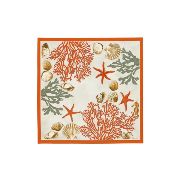 Discover the seaside with the Corail napkin. Between corals and shells, this pretty anti-stain napkin reveals with subtlety the richness of the depths in shades of blue and coral.