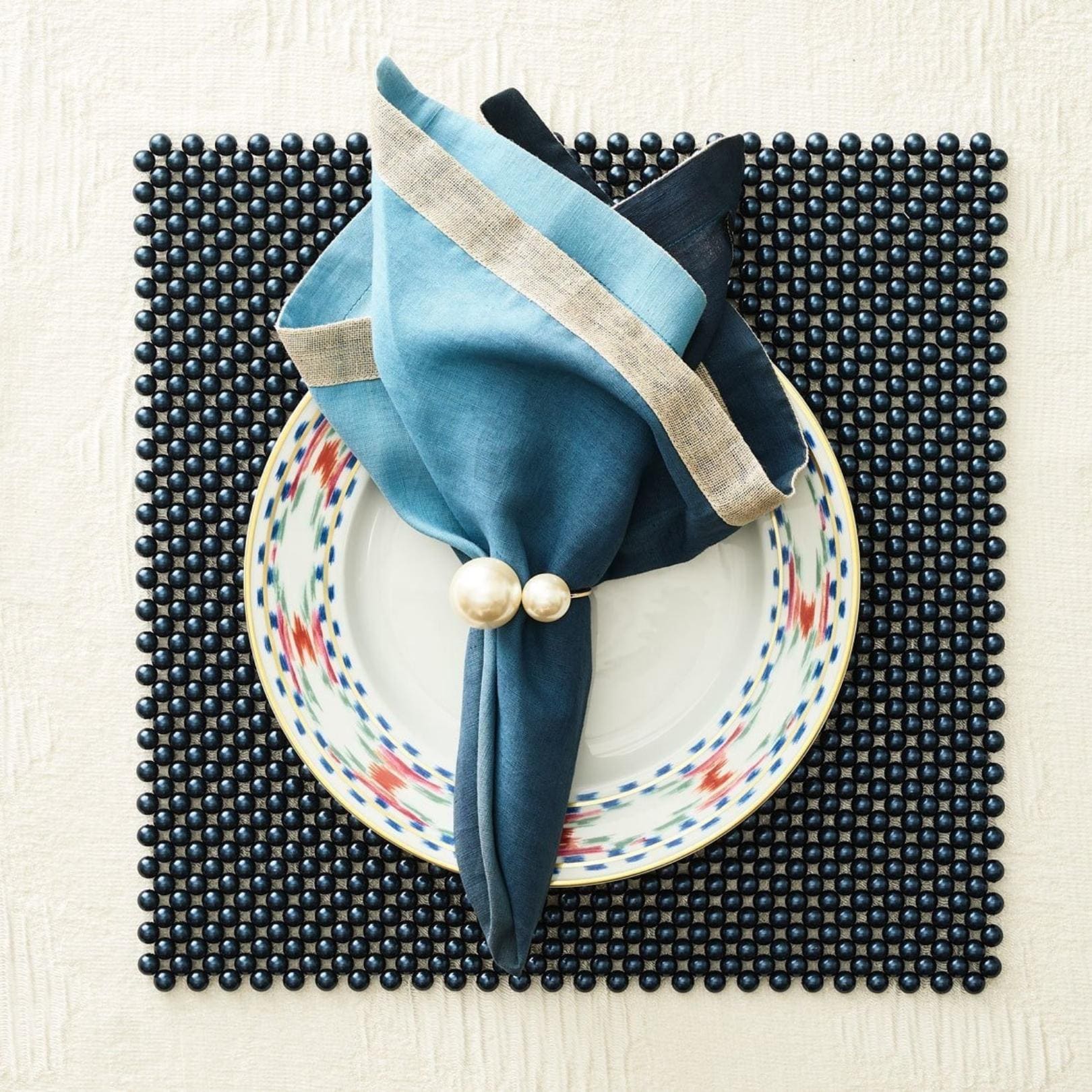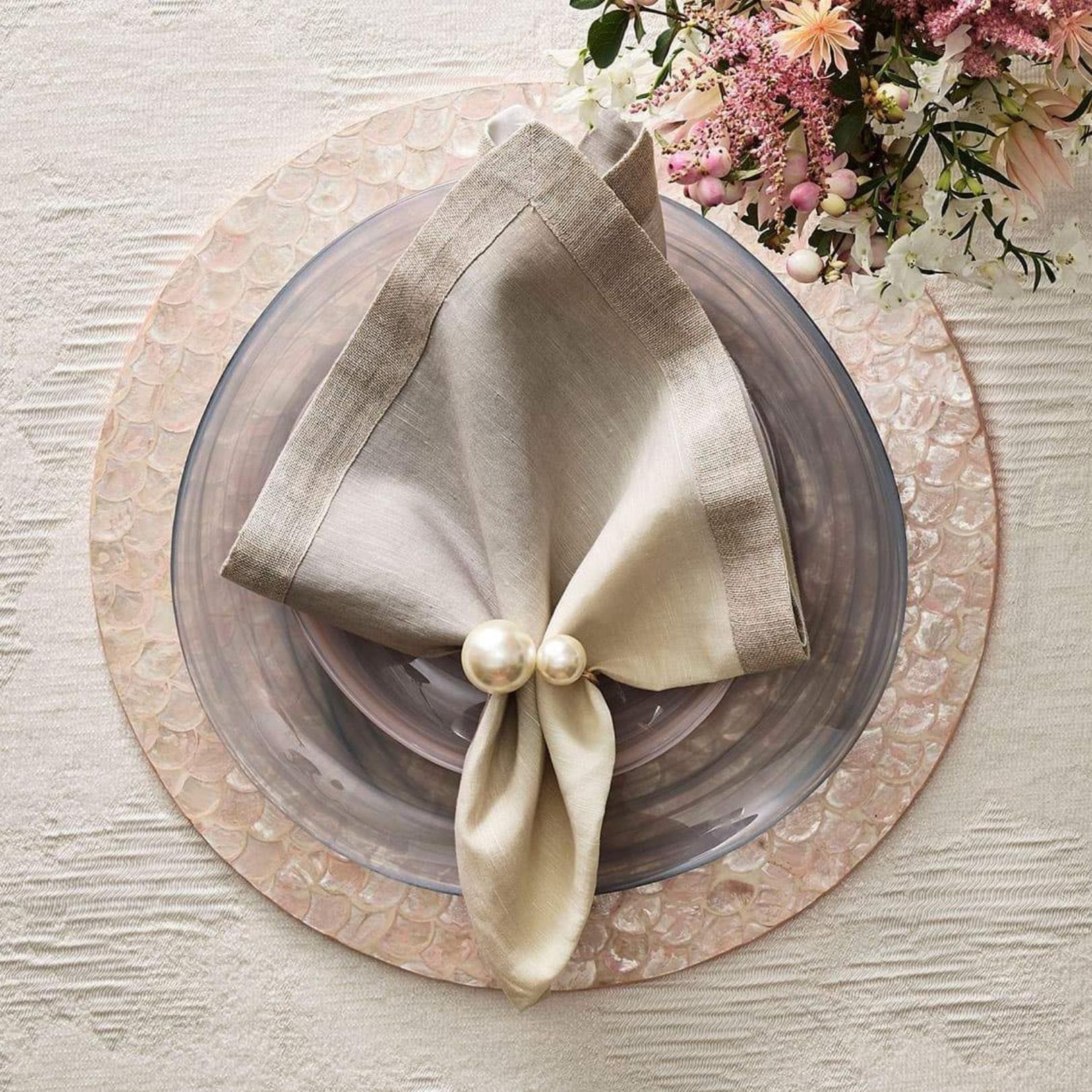 Kim Seyberts Pearl Napkin Ring in ivory and Gold will have your table setting looking chic and elegant. Find the perfect napkin rings for your wedding table decorations.
