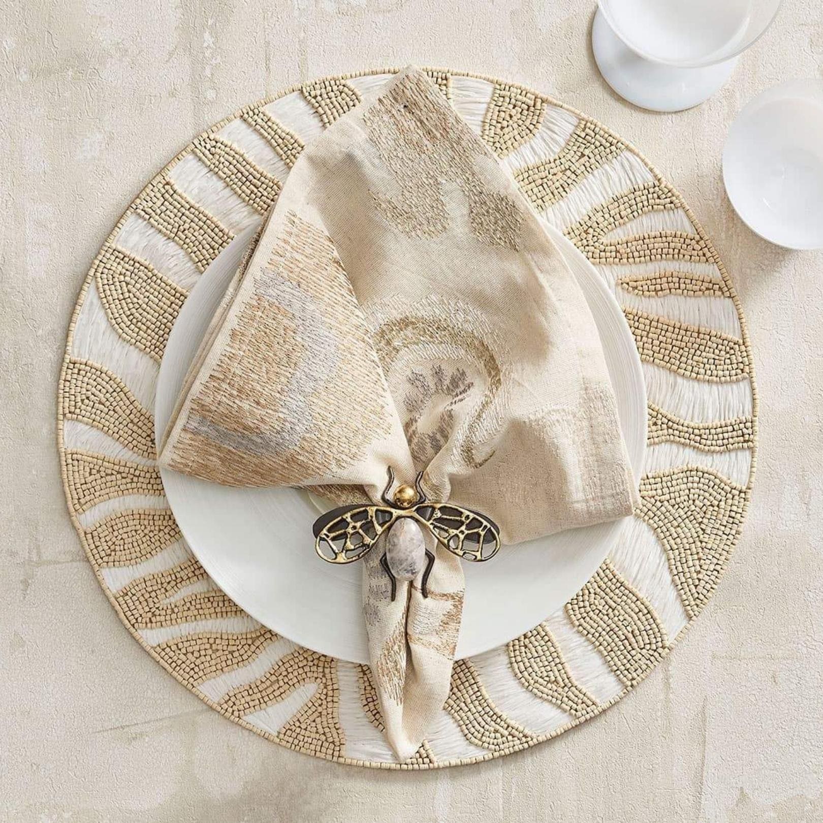 Were bugging out! Fashion-forward and playful, our embellished napkin rings are formed in brass emphasizing its Quartz abdomen.