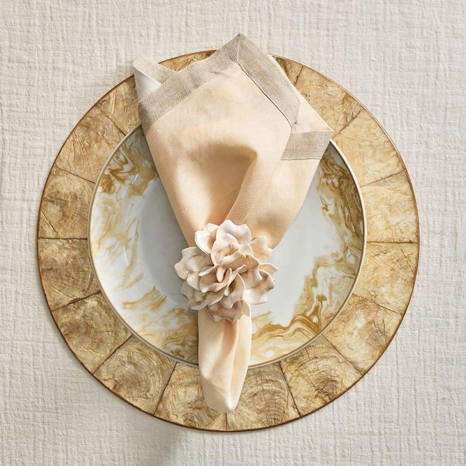 The delicate and natural beauty of the round Capiz Shell Placemat creates a stunning backdrop for any table. The neutral champagne color and organic nature of the round, capiz placemat is a classic staple for year round entertaining. Dress up the round Capiz Shell Placemat with beach-inspired accessories or use metallic accents for a more luxurious style.