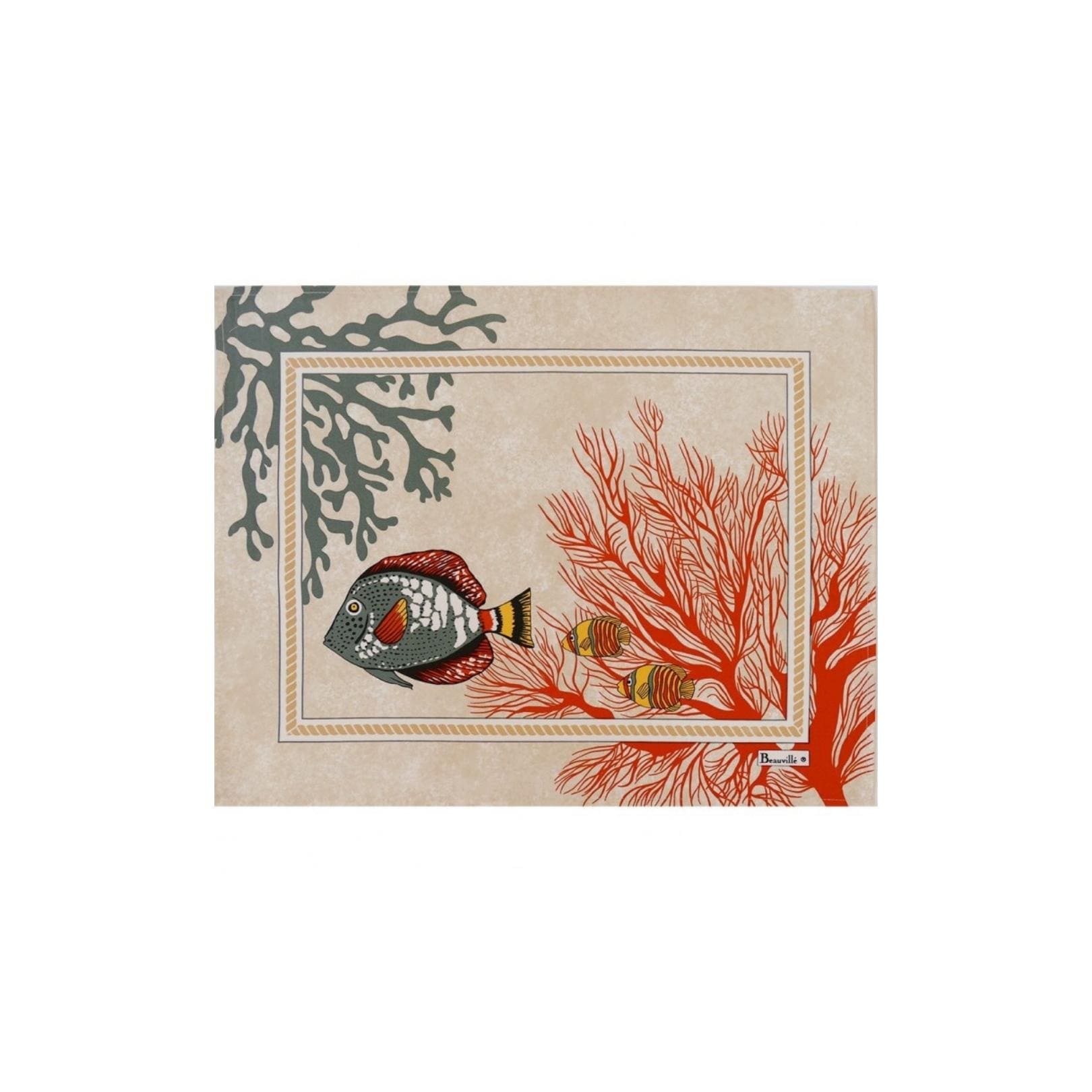 The Porquerolles placemat makes you discover the underwater depths. Between corals and exotic fishes, a rich decor is drawn on your table. The Porquerolles placemat is available in two beautiful colors for your pleasure.