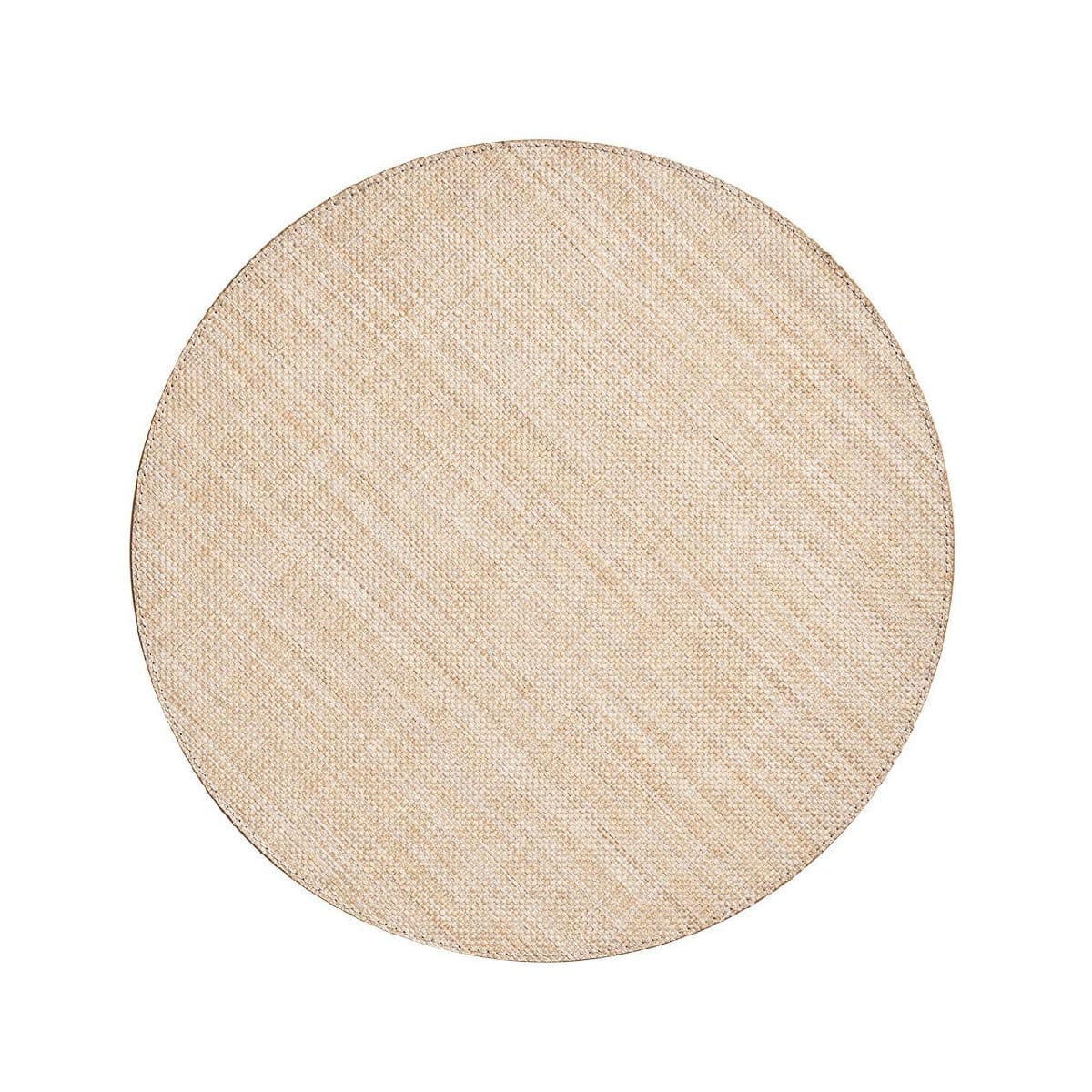 The round, vinyl Portofino Placemat, offered in natural and lilac, allows for easy outdoor entertaining while capturing the heathered texture of the traditional cross-dye cloth application. This round, woven placemat has the look and feel of raffia yet is easily cleaned. Offered in two pastel colors, this round placemat is a summertime entertaining staple.