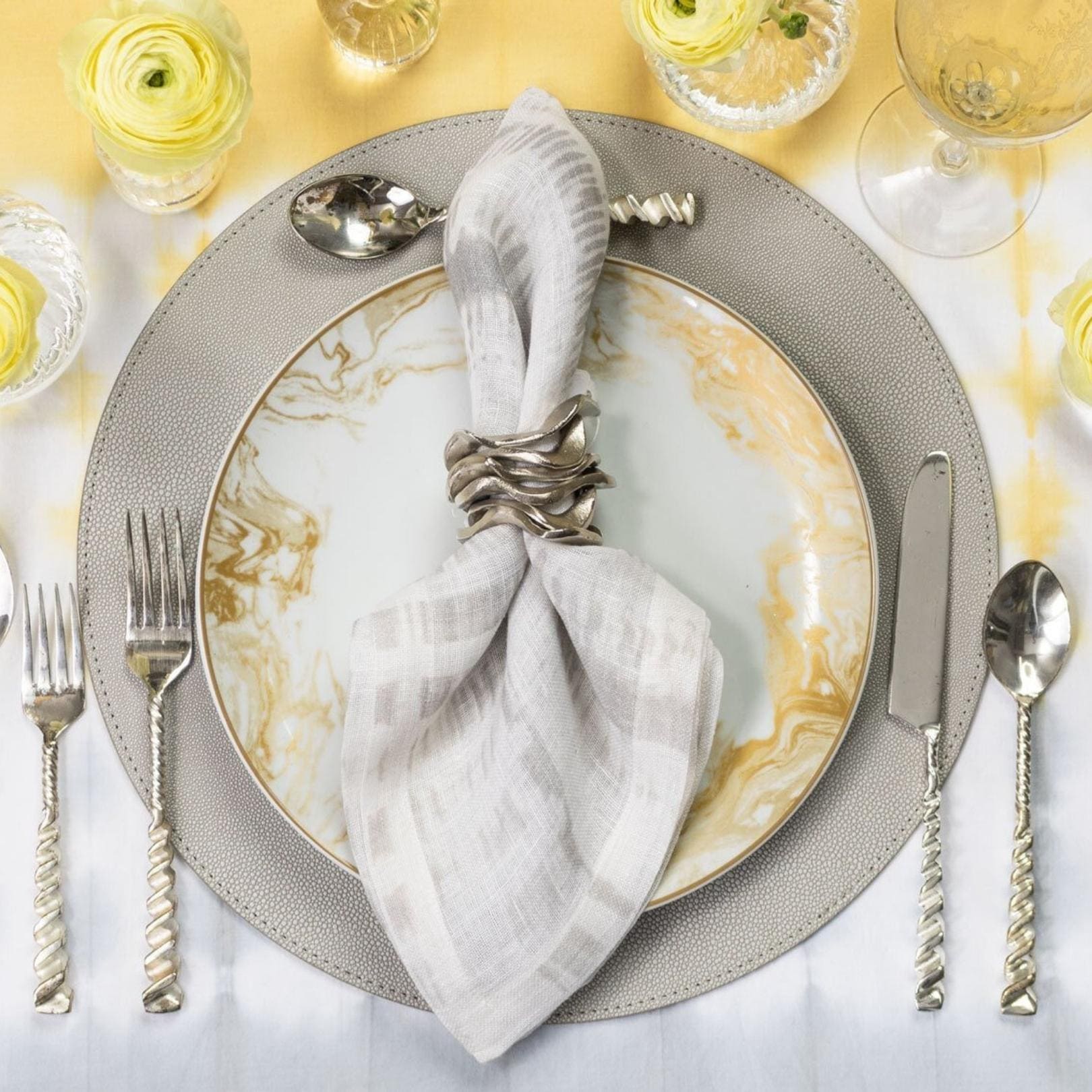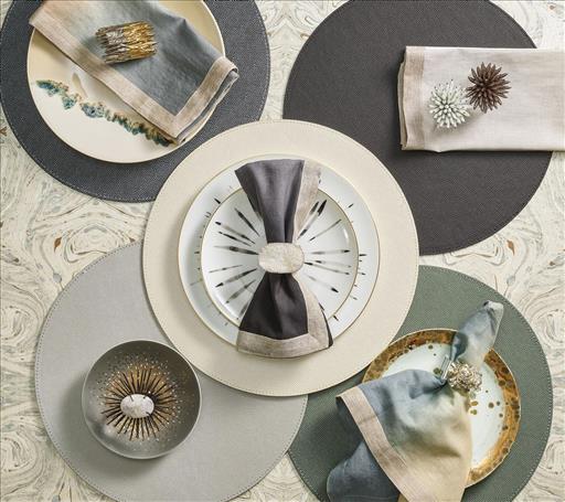 Kim Seyberts Shagreen Placemat in elephant creates a beautiful tabletop, perfect for everyday dining or for an elegant dinner party.