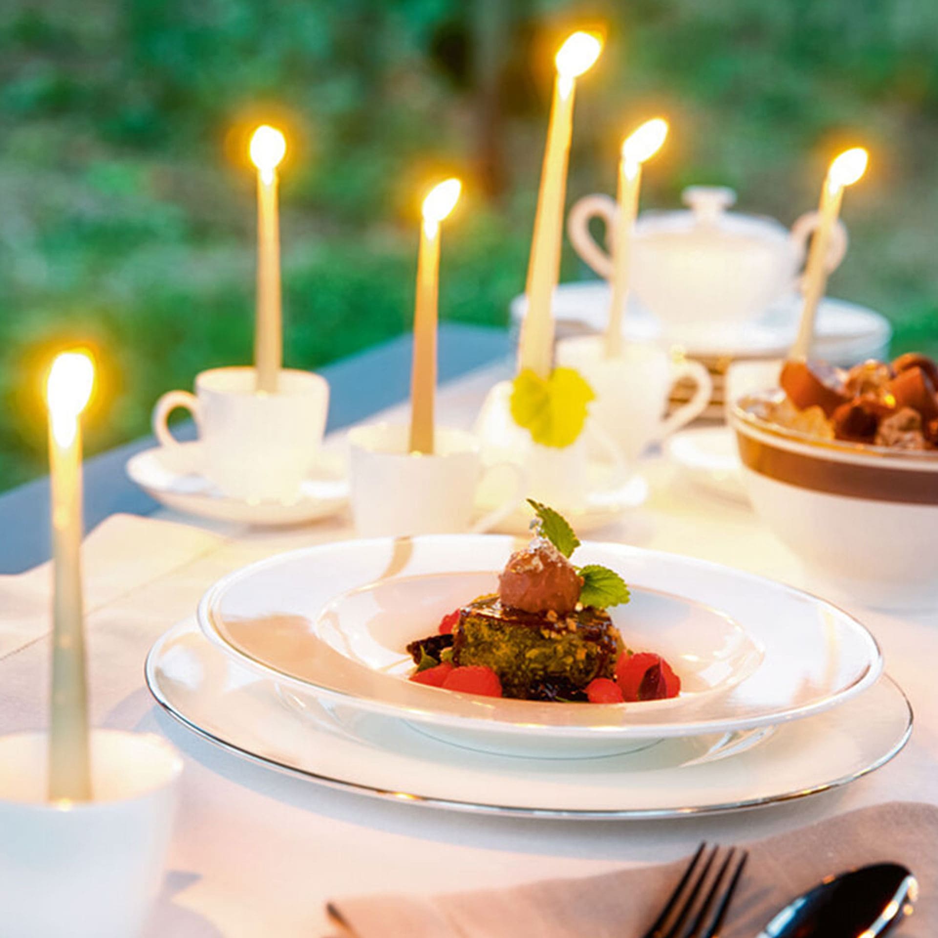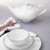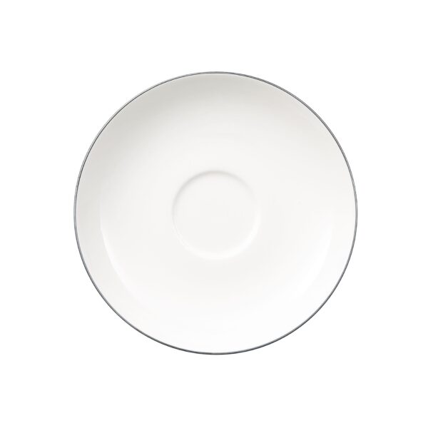 Villeroy Boch offers the ultimate in elegance for every dining table. The timeless Anmut Platinum No.1 and No.2 collections are characterised by a brilliant white and an elegant platinum decor. Add the finishing touch to your tea set with this stunning yet practical tea cup saucer. This handy saucer provides your tea cup with a secure hold even when lying in bed in the evening.