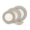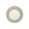 This flat plate forms part of Villeroy Bochs country style pattern Audun Promenade. With this pattern Villeroy Boch exquisitely bridges past, present and future inspired by copper engraved designs from the turn of the last century. Pastoral scenes in black and white have been freshened up by a creamy yellow accent border and other graphic ornamentations. 4 patterns together yield a strong fashion statement to dress up your table or hang decorative plates on the wall. The 4 ranges are: Femme, Promenade, Fleur and Chase. Audun is a small village in what is now the Lorraine Provence of France and was the first pottery set up by the Boch members of the family.