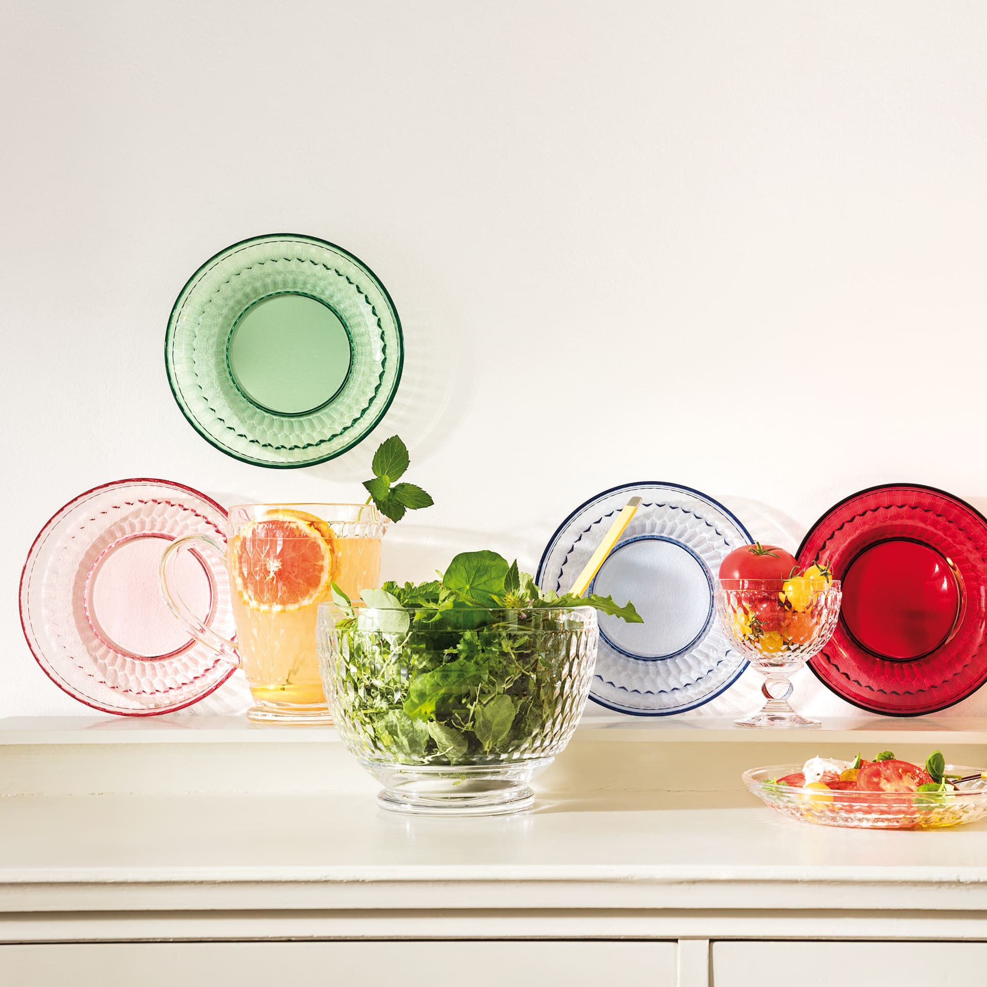 Small but mighty. A striking facet design and the robust, high-quality crystal glass make the stylish pieces from the Boston Coloured collection an attractive eye-catcher, every day and on festive occasions too. Whether a hearty accompanying salad, sweet fruit salad or delicious tiramisu to round off the meal – this small crystal plate can be used in many ways. Add splashes of colour with fine crystal glass.