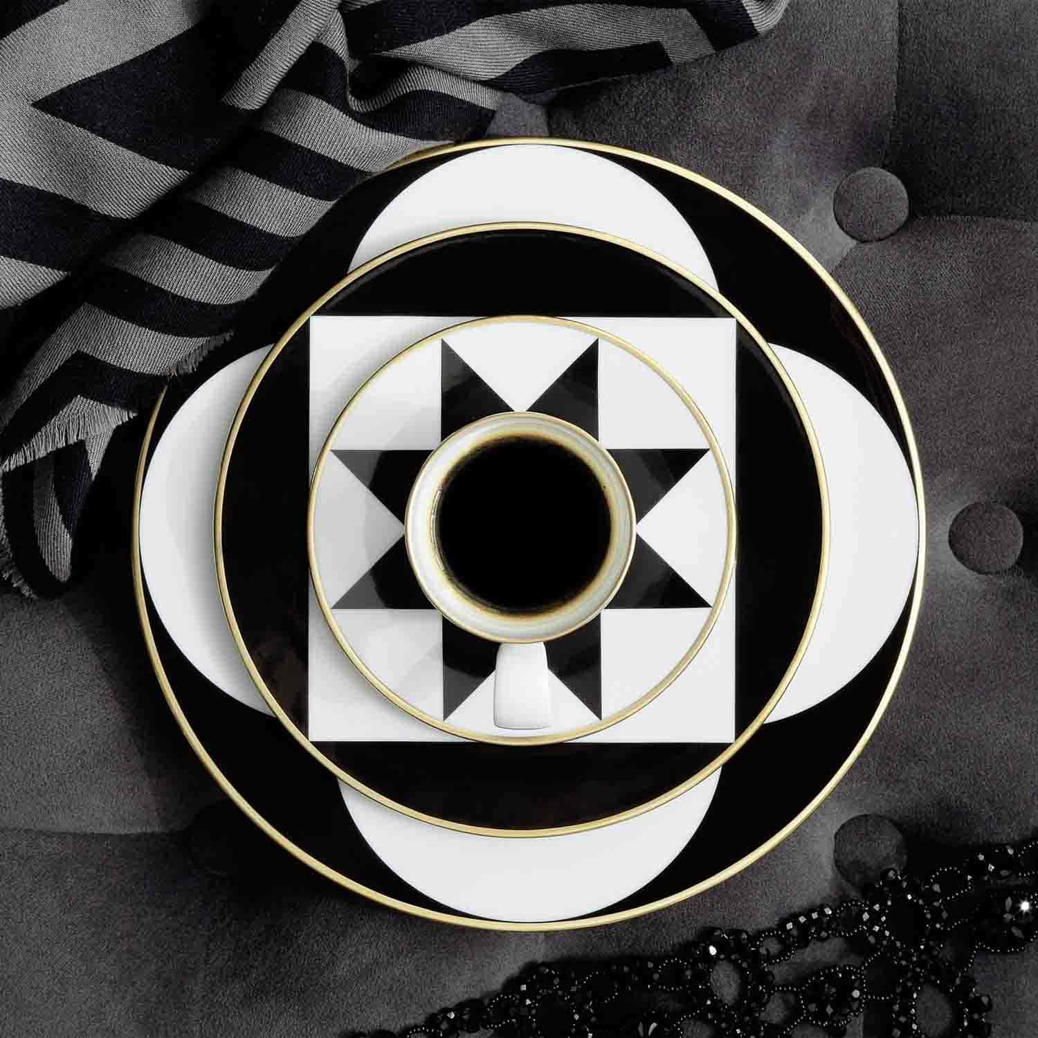 With CA’ D’ORO, the finest burnished gold refines pure black and white contrasts. The geometric interplay gives rise to classic stripes, squares, circles and other architectonic patterns.