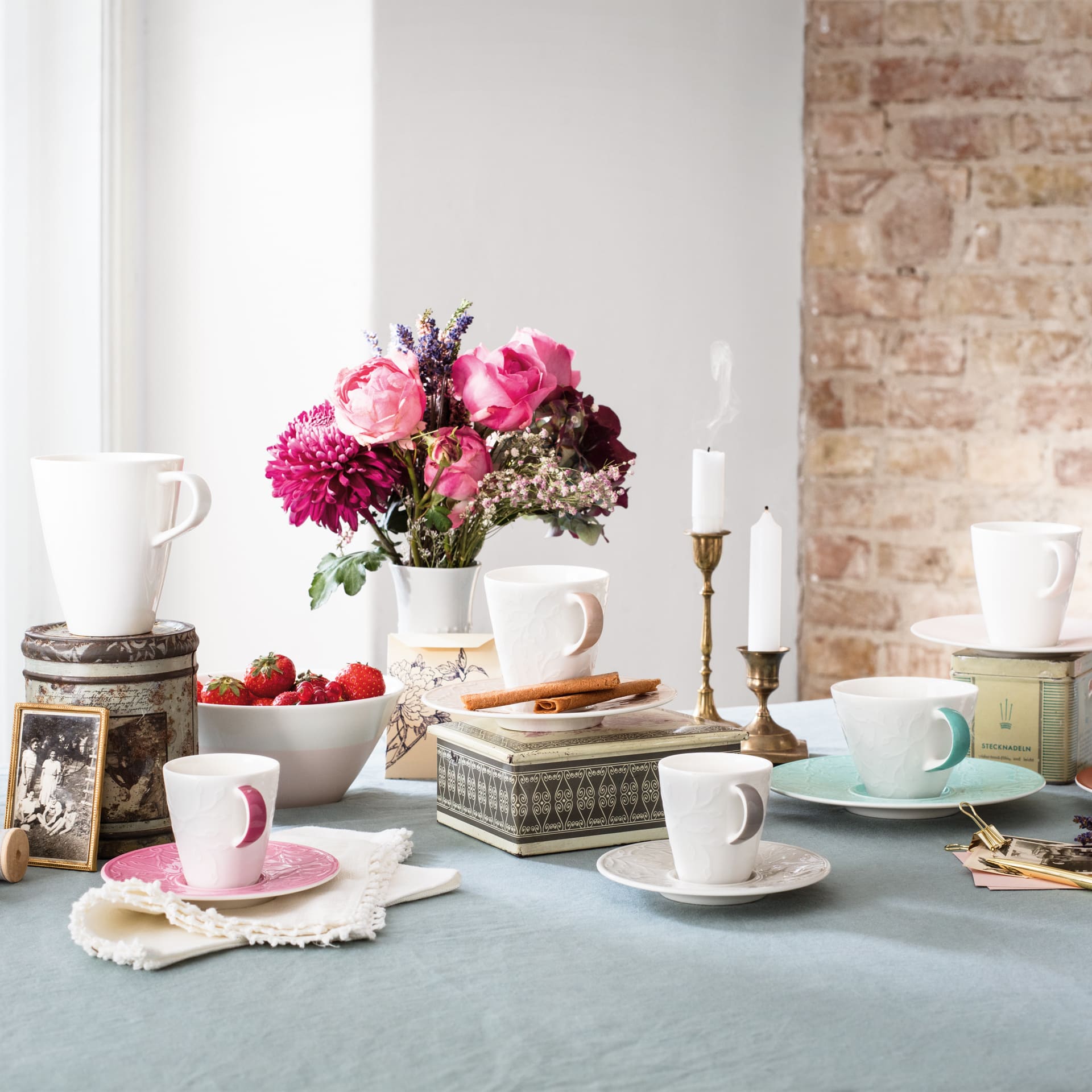 For little treats with coffee. The Caffè Club Floral Touch collection, made from shockproof and chip-resistant Premium Porcelain, features an attractive floral relief, providing the perfect coffee experience you can touch. This stable saucer is large enough for serving little extras with your coffee. Serve homemade delicacies with coffee.