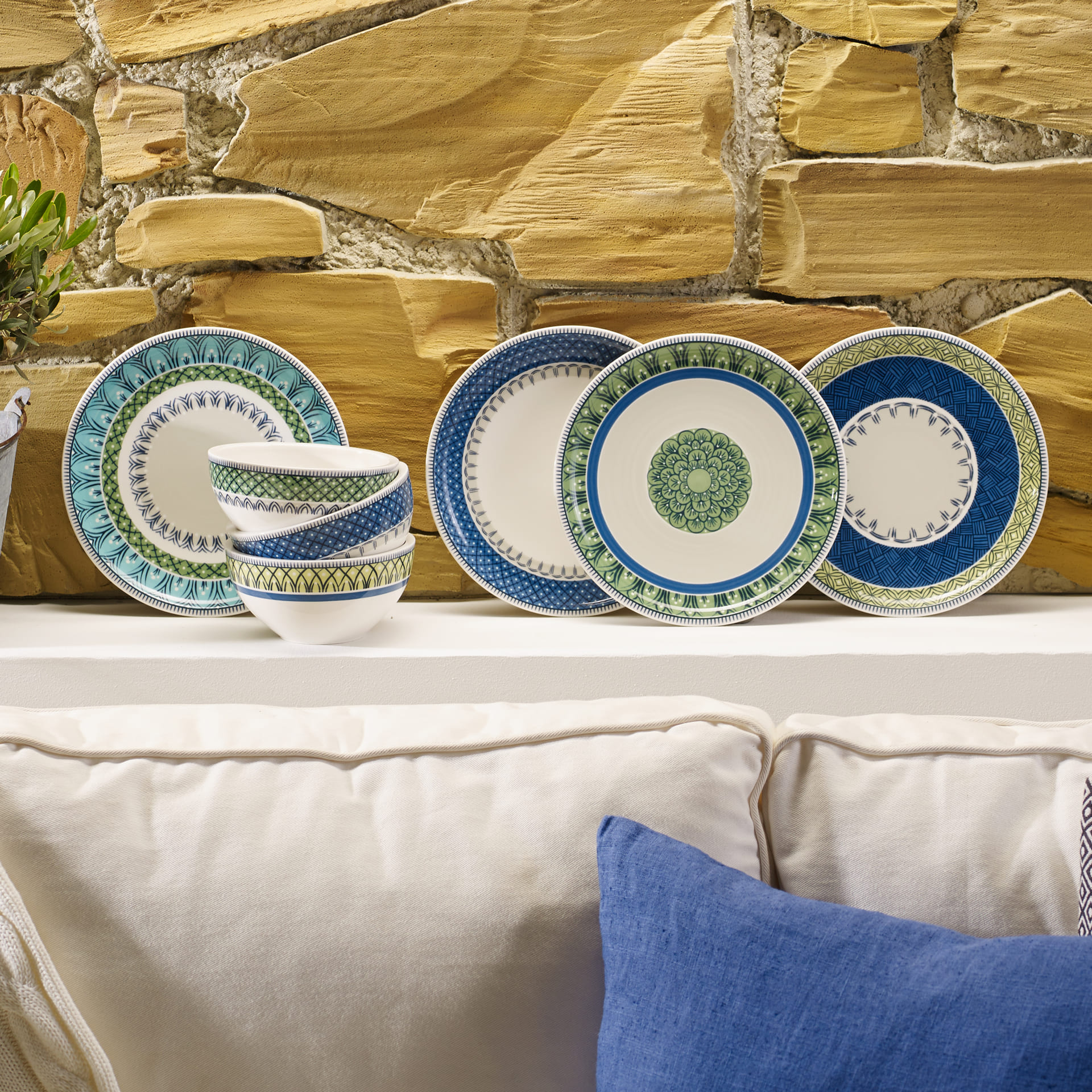 Versatile small plate with a Mediterranean pattern. Modern coupe shape, retro design and artisanal charm: thats Casale Blu. Inspired by traditional Umbrian ceramics, this collection in vibrant shades of blue, yellow, green and turquoise will add a dash of Italian style to your table. The modern breakfast plate ensures the perfect start to the day. This beautifully crafted plate can be stacked securely to save space. Experience porcelain design with an Italian twist.