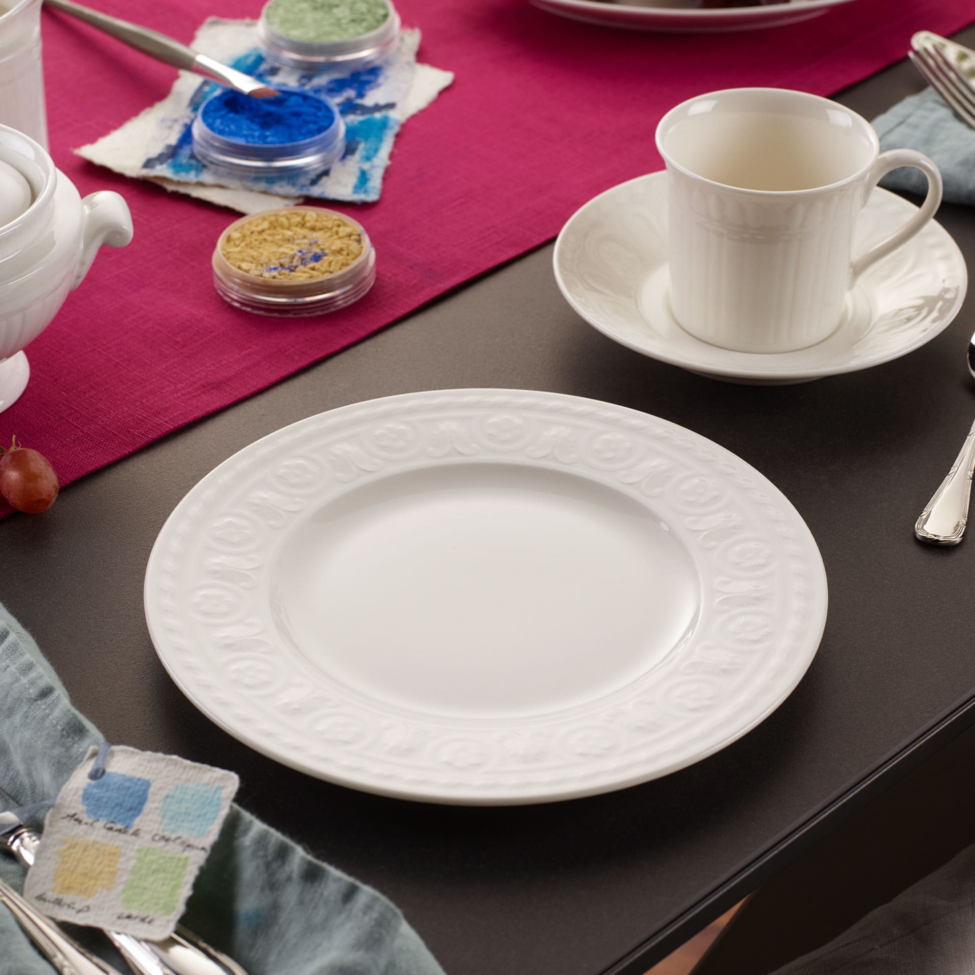 Cellini boasts delicate relief detailing on soft, white shapes, celebrating Renaissance architecture. The collection brings classic elegance to your table with its traditional gracefulness. Warm croissants or fresh fruit: morning treats taste even better when served on this salad plate. Treat your loved ones to stylish tableware early in the morning.