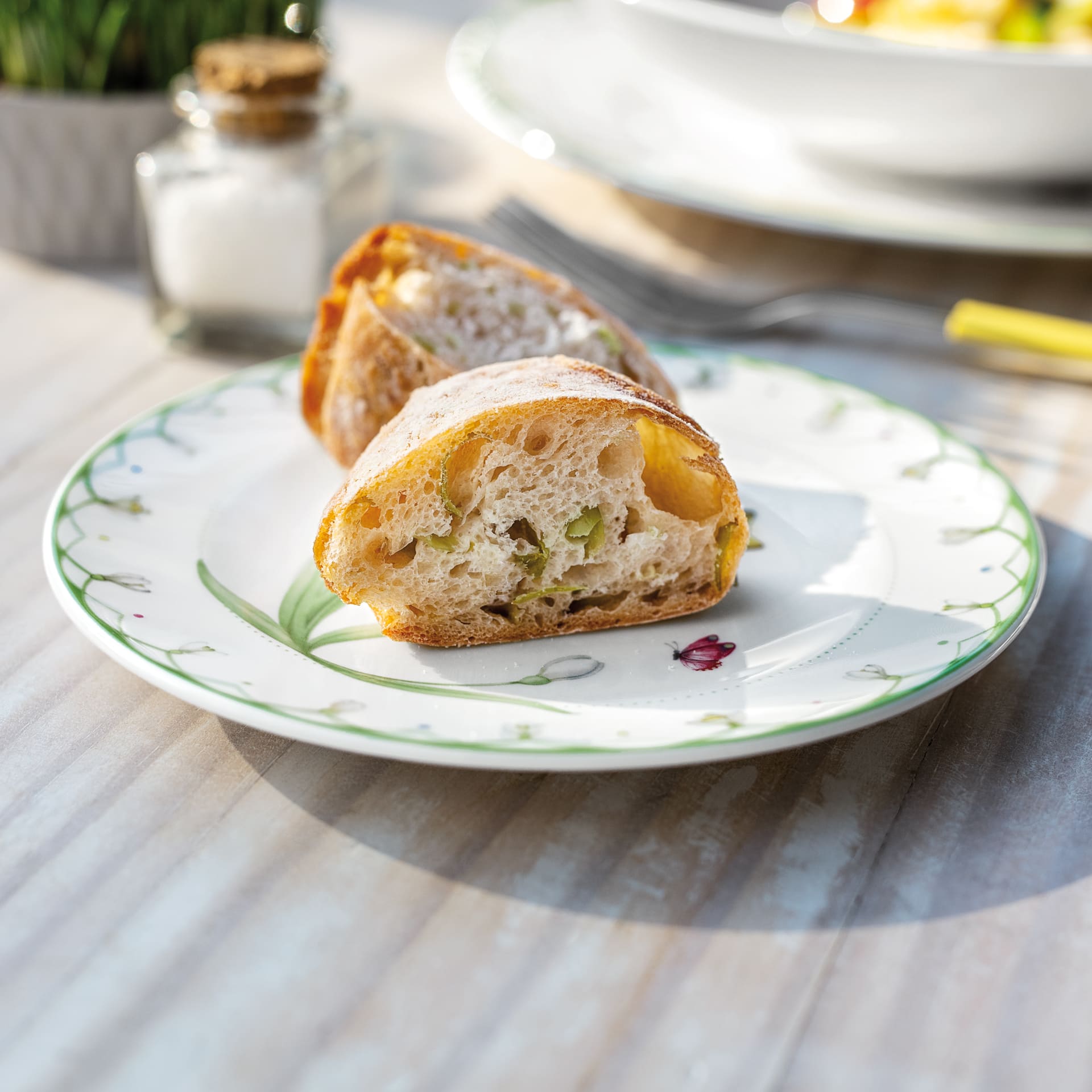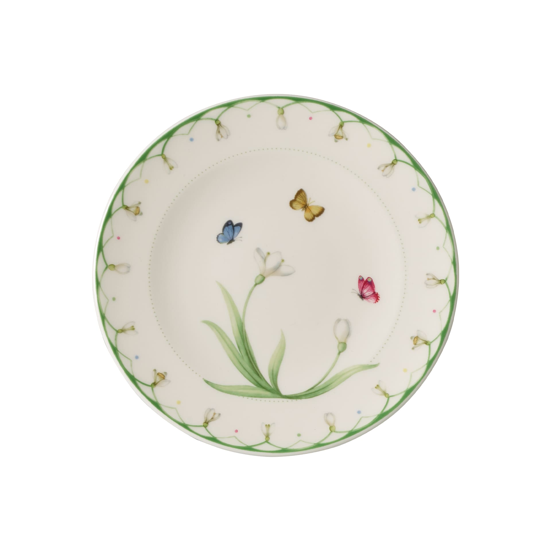 The perfect addition for your beautiful table. Our timelessly beautiful Colourful Spring collection will delight you all year round. The main actors on the beautifully shaped pieces are delicate snowdrops and colourful butterflies. They give the collection cheerful splashes of colour and brighten up every dull moment. This small plate is the ideal addition for your large Sunday dinner or festive meal. But you can also serve bread or butter on it every day. Enjoy this spring design every day anew.