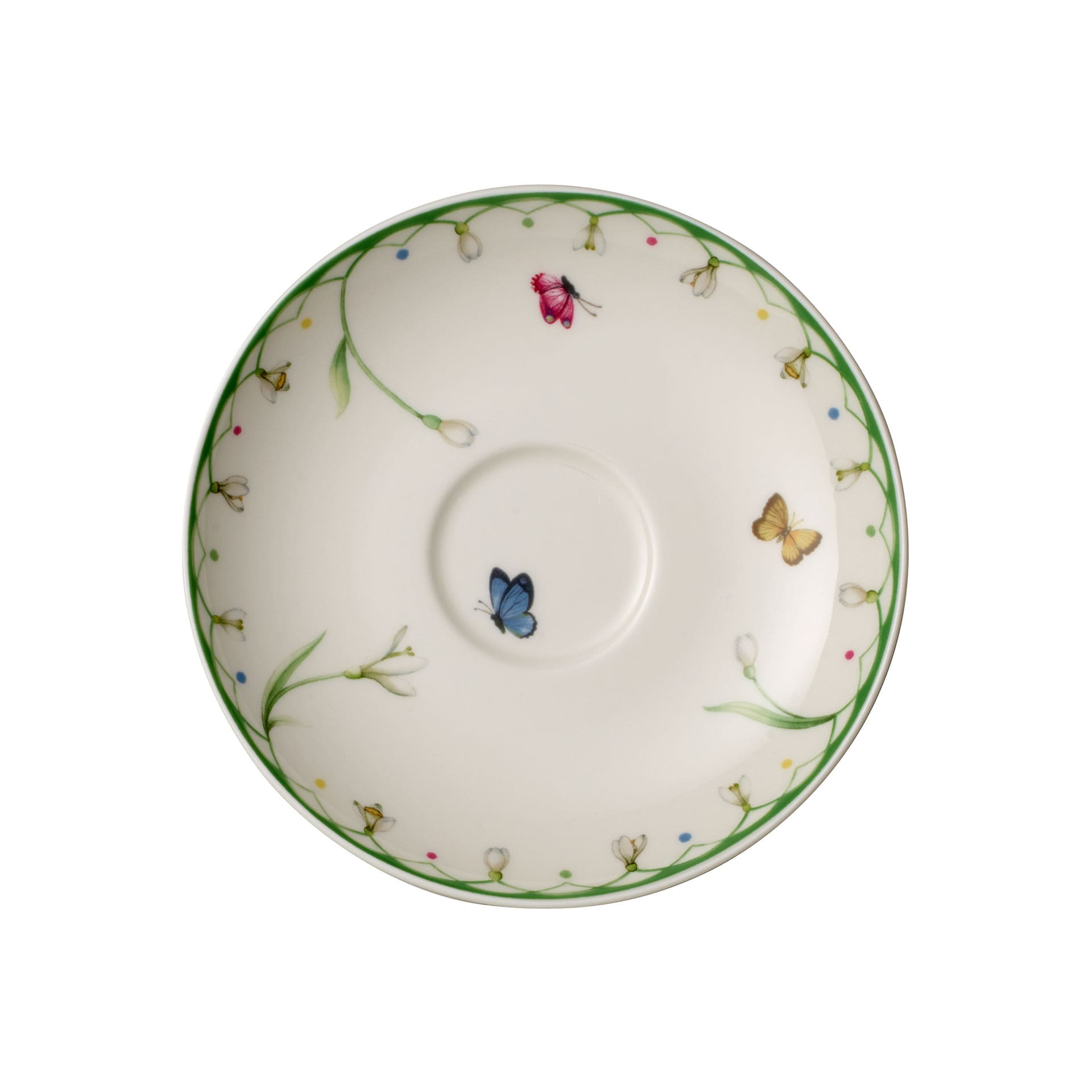 Snowdrops are the first messengers of spring. Welcome spring into your home with the delicate flowers and colourful butterflies from the Colourful Spring collection. Serve small treats on the saucer with a snowdrop motif from Colourful Spring with your coffee. Let your home blossom.