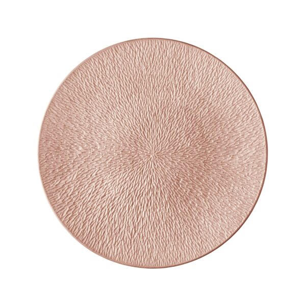 A vigorous, precise relief is inspired by nature and reinterpreted on a very flat contemporary plate. A line of plates to be completed with dishes, star cups, salad bowls and pieces for serving tea and coffee, for an inventive, refined collection. Have fun with this collection’s manifold recipients, which will stimulate your creative instincts and offer a vast range of choices for presenting your dishes. Available with gold or platinum trims. It is also available in a palette of 10 hues in earthy, vegetal and mineral colours, and in a precious yellow gold. Light plays over the shimmering glaze of the surface, with iridescent pigments delicately superposed on a matt background.