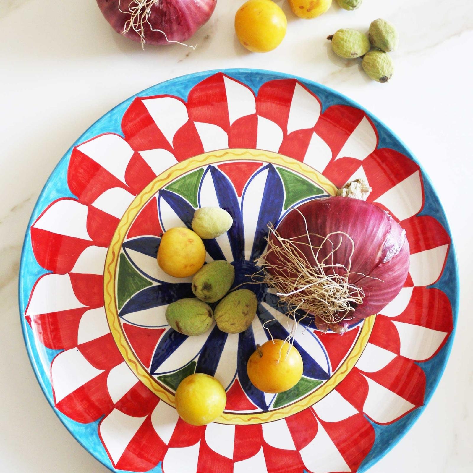 These serving plates are inspired by the traditional colours and decorations of Sicilian culture, and are entirely handcrafted by our master craftsmen who mould the clay into genuine works of art.