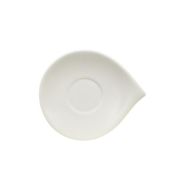 Saucer with a modern design for sweet treats with espresso. The elegant, pure white Flow crockery range made of high-quality Premium Porcelain captivates with bold curved lines and a timeless elegance. Modern porcelain design, perfect for every occasion whether casual or a certain chic. Use these saucer to serve a sweet treat with an after-dinner espresso. Add the finishing touch to your espresso set.